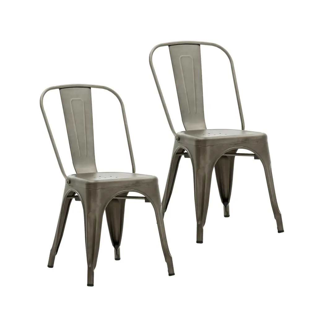 Porthos Home Sagi Metal Dining Chairs Set Of 2, Easily Stackable - Gunmetal Gray