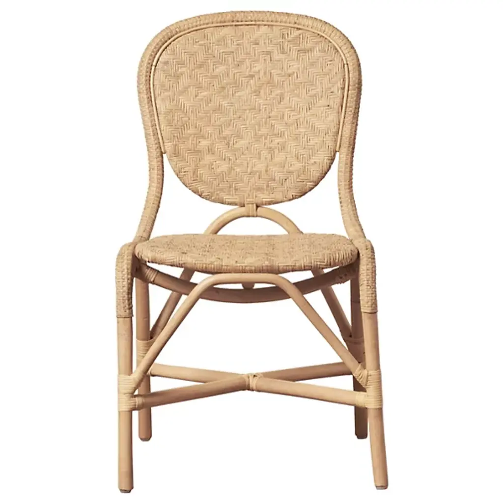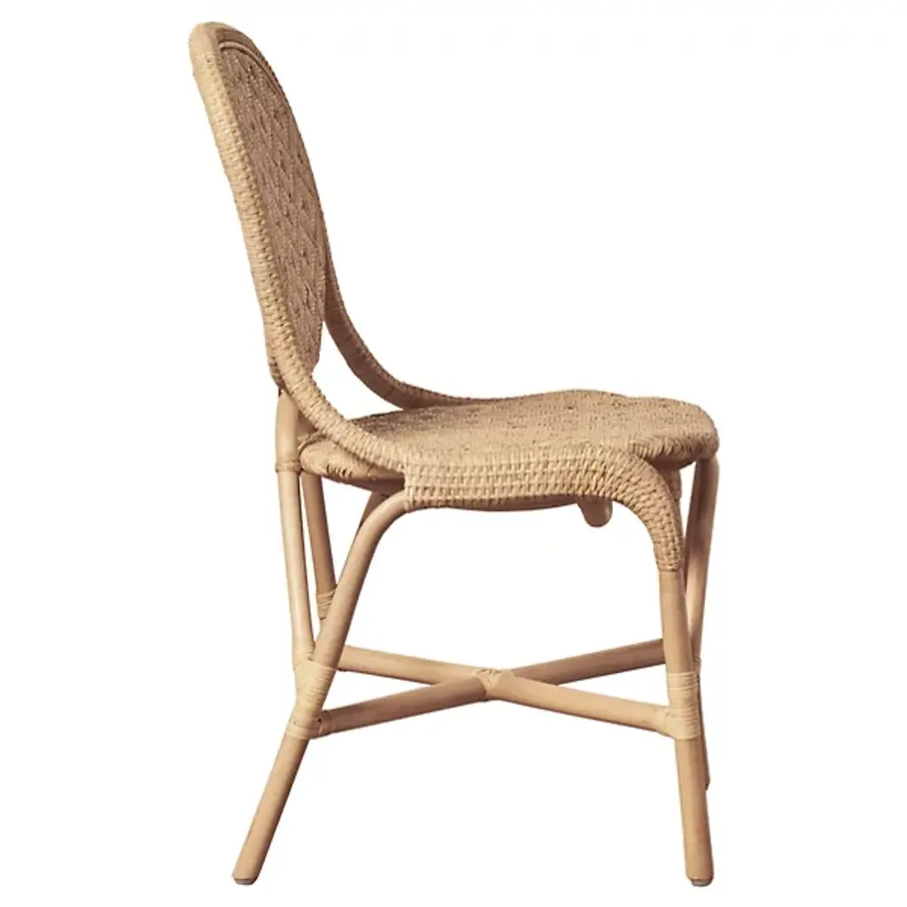 The Portofino Side Chair from Woven celebrates traditional craftsmanship through a contemporary coastal lens. Skilled Indonesian artisans steam and shape sustainably harvested rattan into graceful curves, creating an elevated interpretation of the classic bistro style. The intricate seat and back weaving patterns showcase meticulous attention to detail, while the natural material promises to develop a rich patina over time. Whether gracing an indoor dining space or covered terrace, this Mediterranean-inspired chair brings an effortless blend of casual comfort and seaside sophistication.