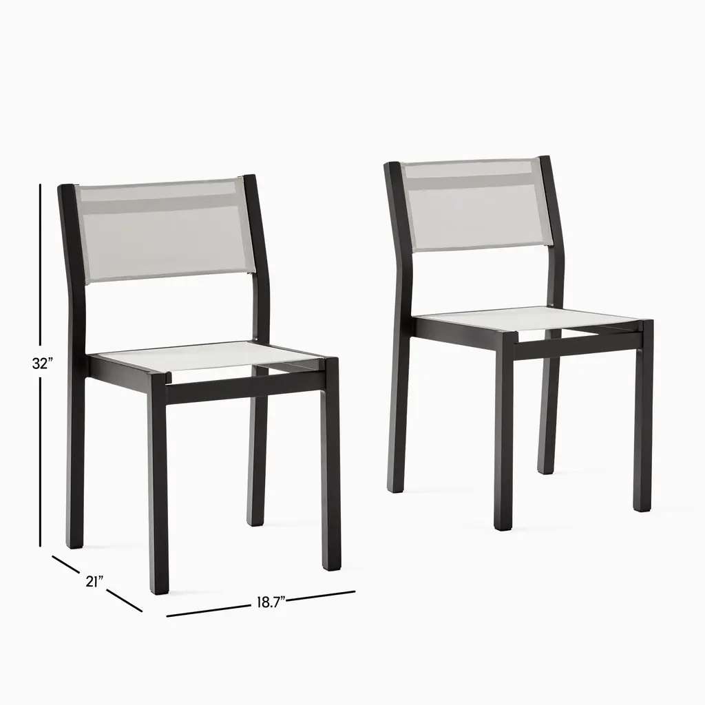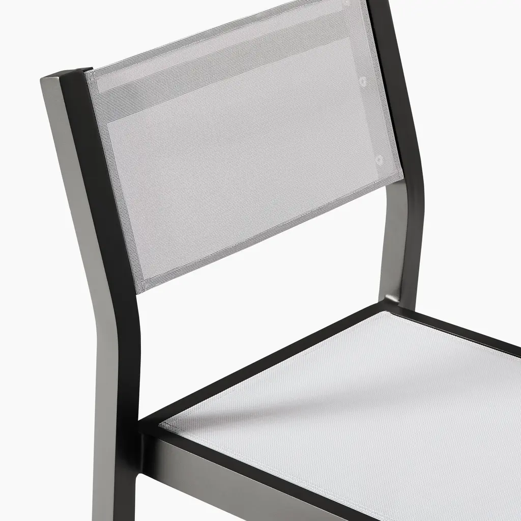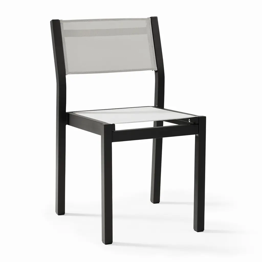 Its sleek form & modern, powder-coated finish. Rust-proof aluminum is perfect for outdoors. Breathable textilene® keeps you cool & comfortable. Stackable and comes in handy sets of two.