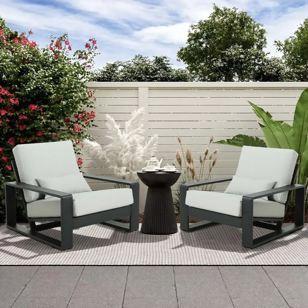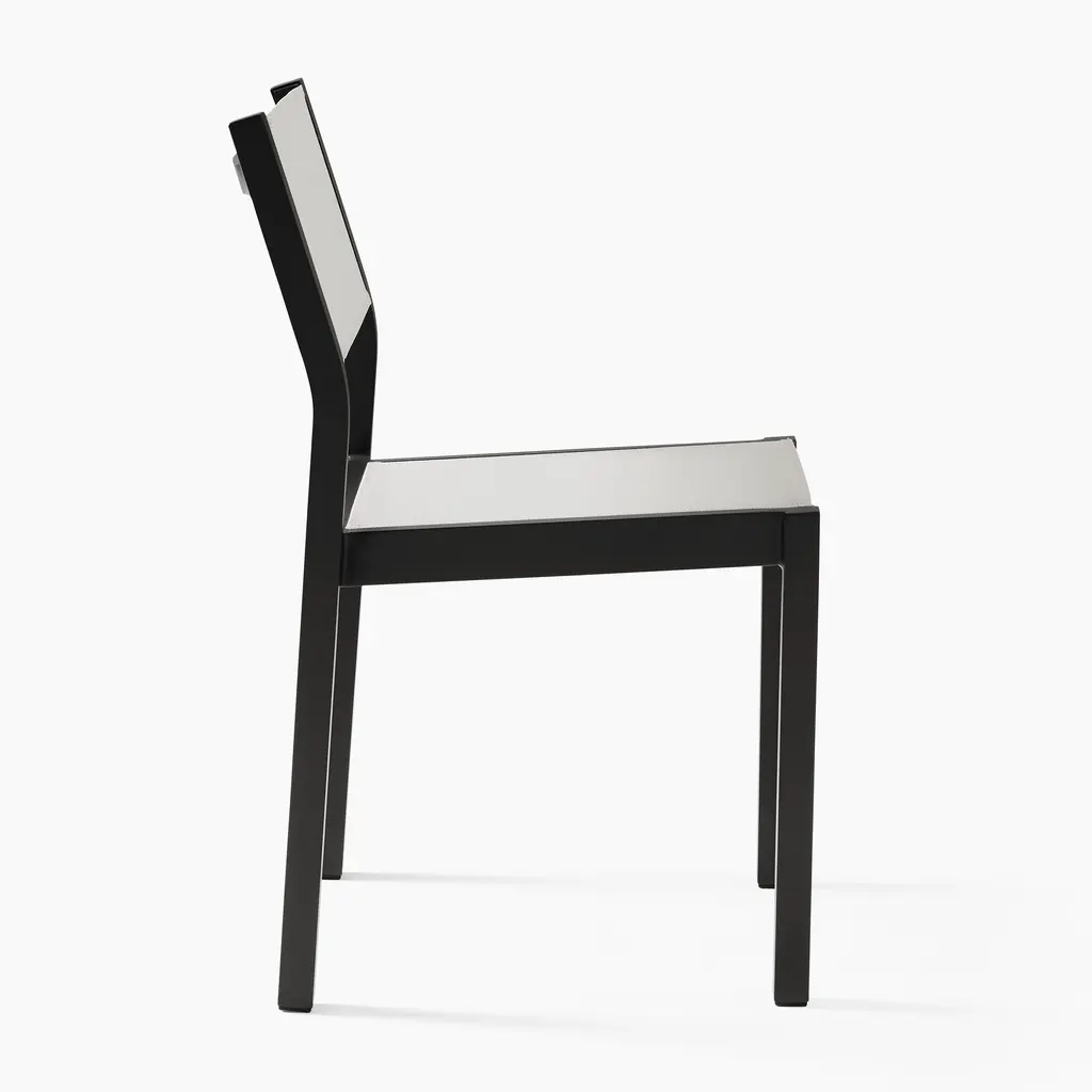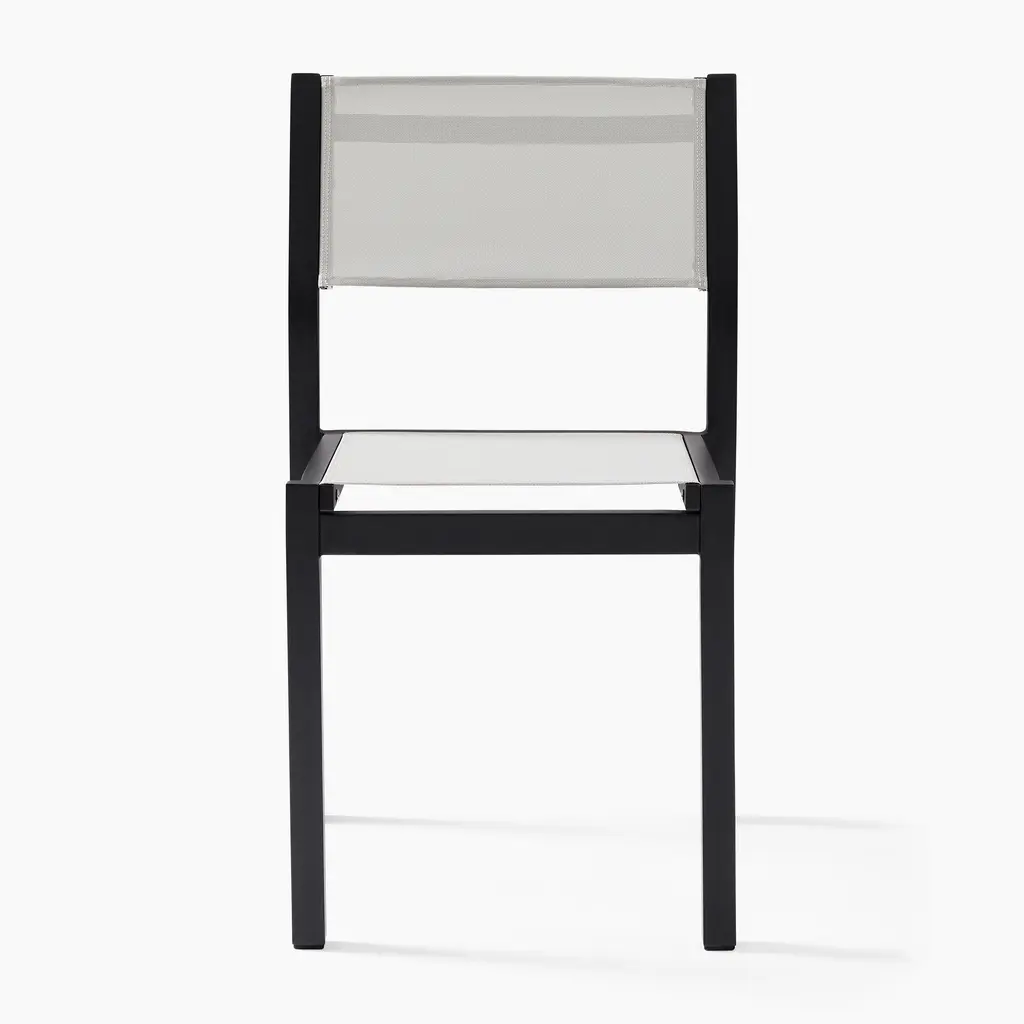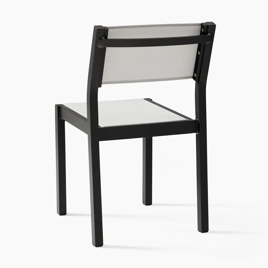 Its sleek form & modern, powder-coated finish. Rust-proof aluminum is perfect for outdoors. Breathable textilene® keeps you cool & comfortable. Stackable and comes in handy sets of two.