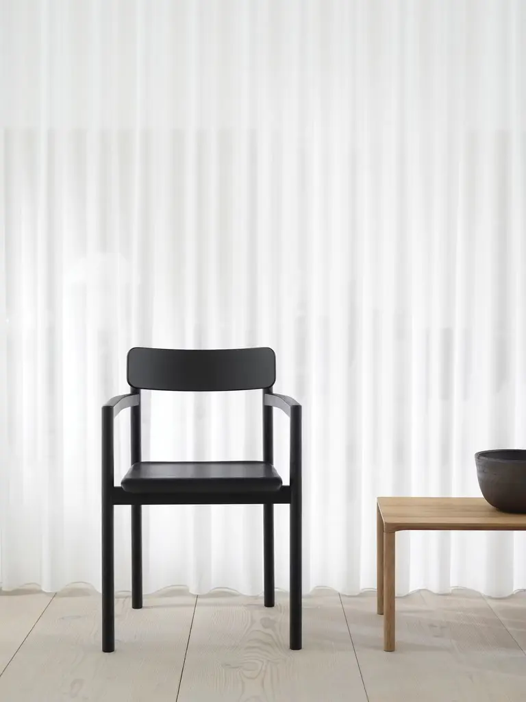 With its curved backrest, supportive arms, and gently shaped seat, the Post Dining Chair (2019) is an elegant, comfortable chair for dining and more. A slender frame and arms are paired with a generous seat, to maximize seating at a table. Expertly crafted from solid oak, this chair is finished with a light oil to seal the surface, improve stain resistance, and highlight the natural beauty of the wood. Discreet stretchers beneath the seat make it appear to float within the frame, resulting in the subtle yet intriguing aesthetic for which Danish designer Cecilie Manz is known.
