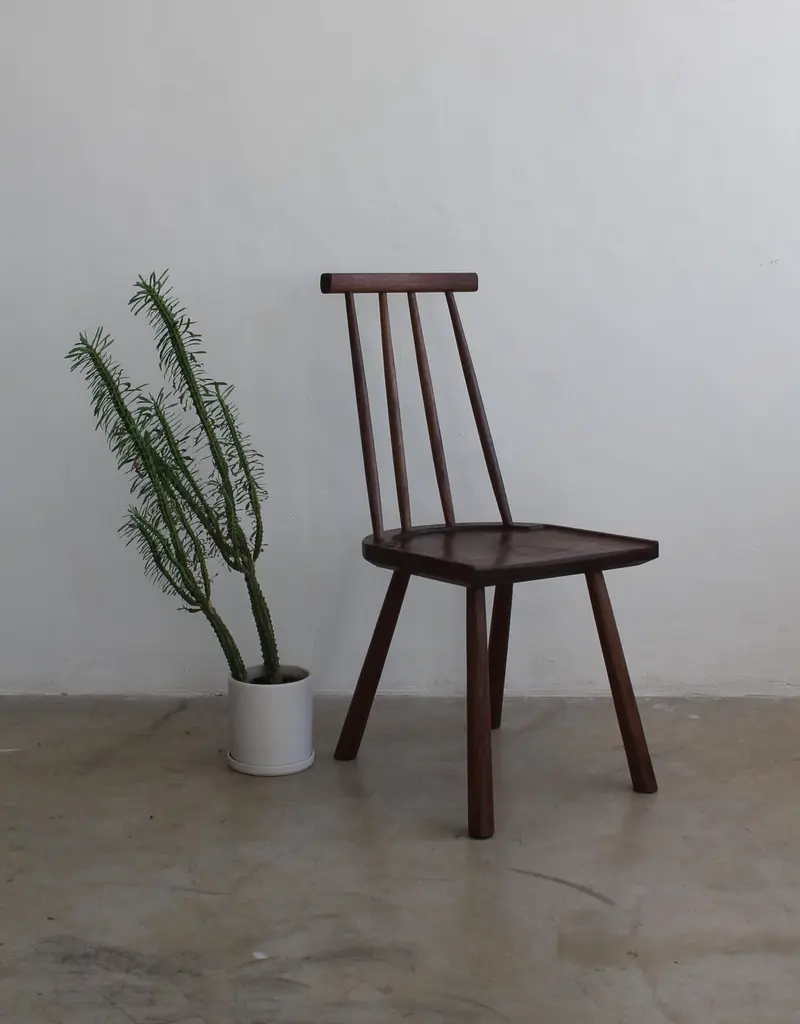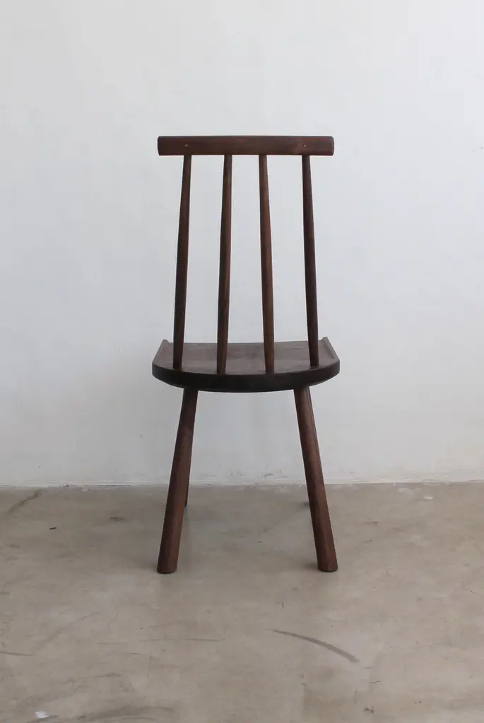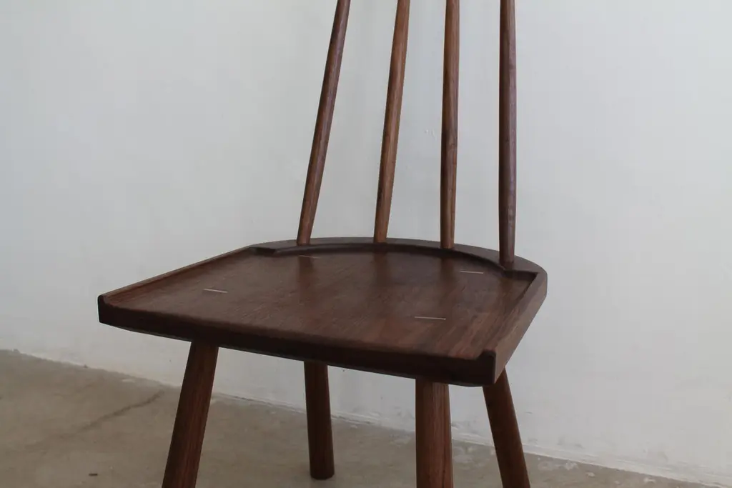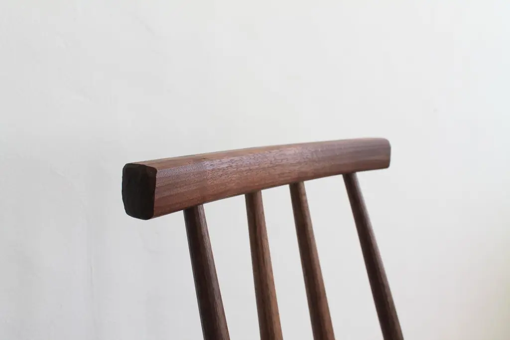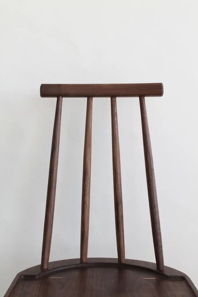 Inspired by the simple elegance of Shaker design, the Post Hana Dining Chair distills the features of spindle back seating into its most elemental form. A hand shaped walnut seat acts as the anchor for every other member of the piece. The hand turned spindles and legs are 'staked' into the seat using wedged mortise and tenon joinery; ancient chair building techniques that we have brought into the 21st century with clean lines and minimalist form.The catalyst for this design was a request from the renowned Post Co design firm to scale down our Hana Dining Chair in order to accommodate the large number of guests a client wanted to squeeze into a table. We carefully reworked the proportions and arrived at a product that, though smaller, is every bit as comfortable and striking as the original.