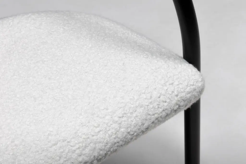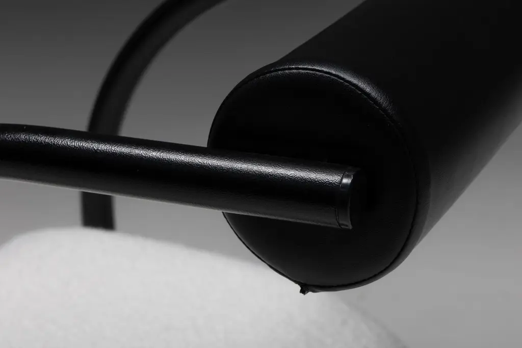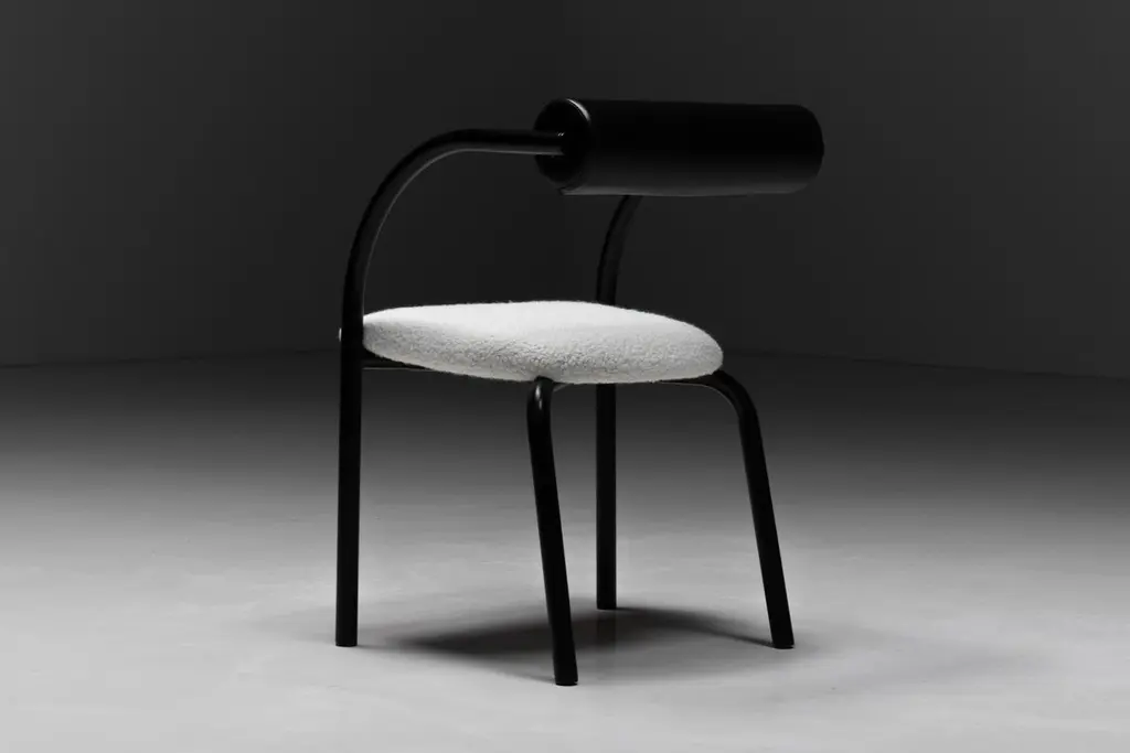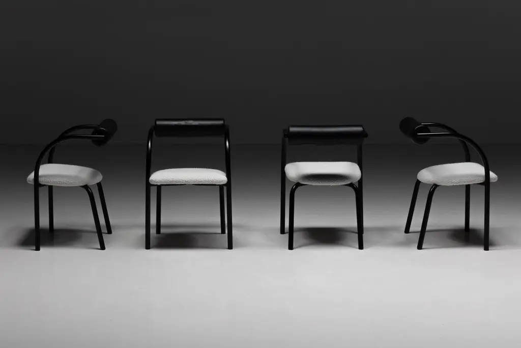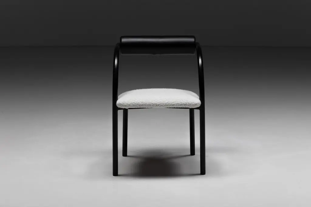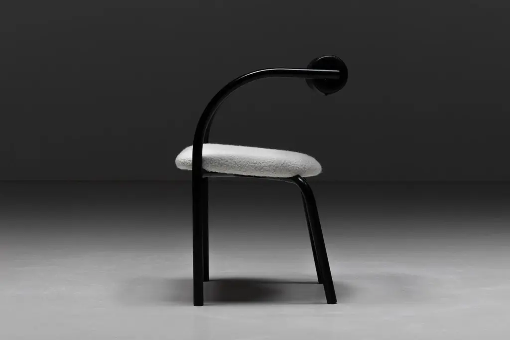 Postmodernism; Denmark; 1980s; Dining Chairs; Armchairs; Mid-Century Modern; Modernist Design; Italian Design; Danish Design;Post-modern dining chairs, a perfect blend of elegance and contemporary style. These chairs are crafted with meticulous attention to detail, featuring black lacquered metal tubular frames that exude a sleek and sophisticated appeal. The contrasting combination of a black leather cushion on the backrest and white bouclé fabric seats creates a striking visual contrast, making these chairs stand out in any dining setting. These chairs, originating from the 1980s, are in good condition and priced per piece. We have 5 chairs available.