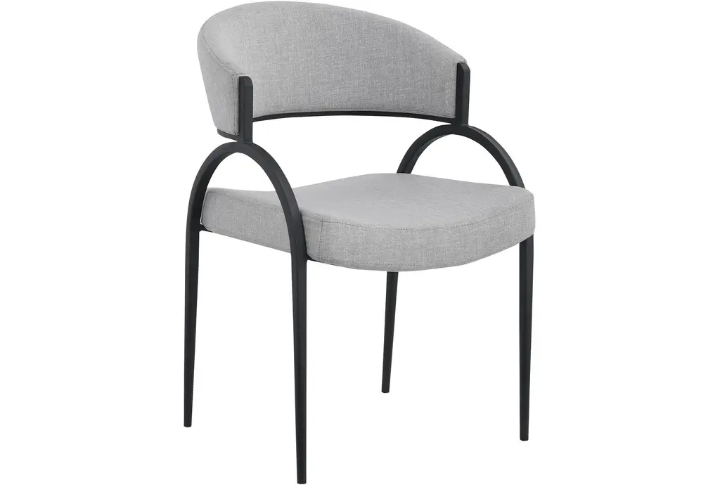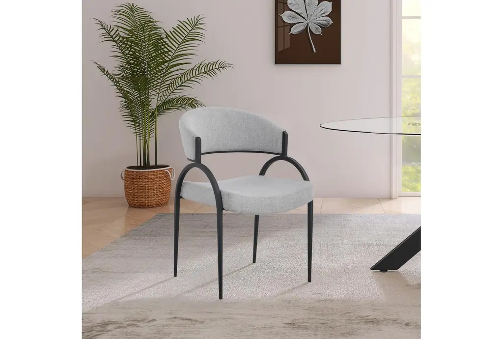 The Privet Grey Linen Textured Fabric Dining Chair with Matte Black Finish is a perfect addition to your dining room. This set of 2 chairs combines modern design with comfort, featuring a soft grey fabric and sturdy metal legs. Ideal for any dining space, these chairs offer a sleek and contemporary look.