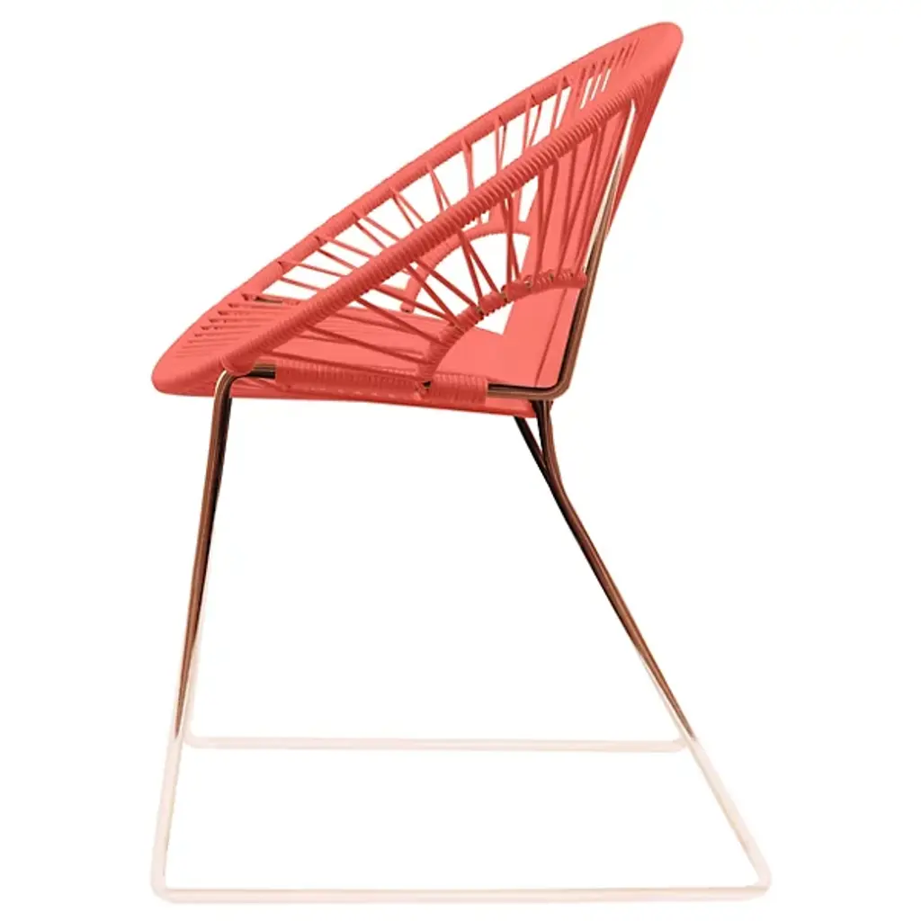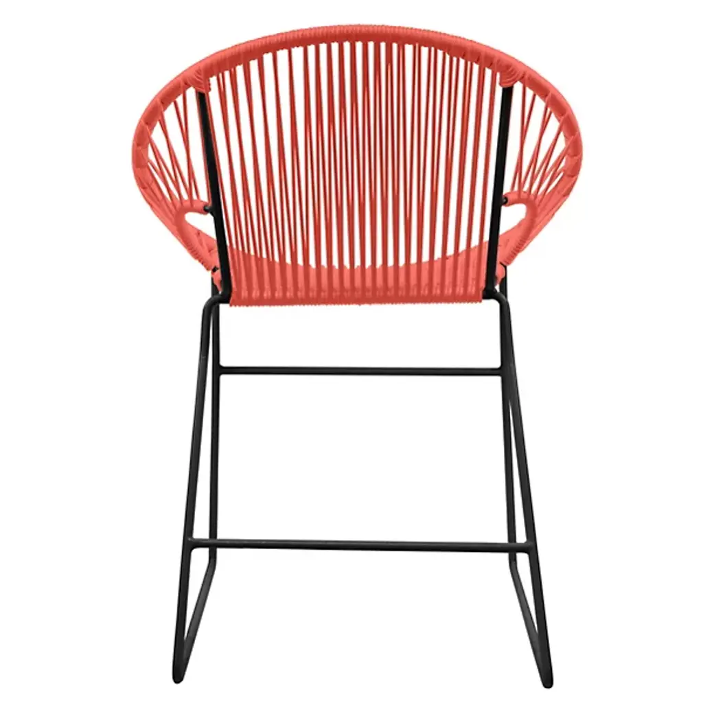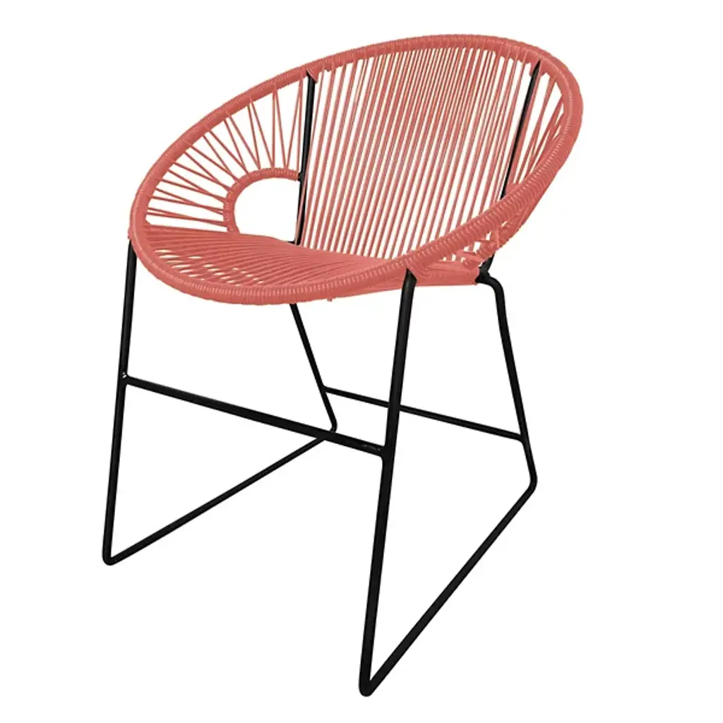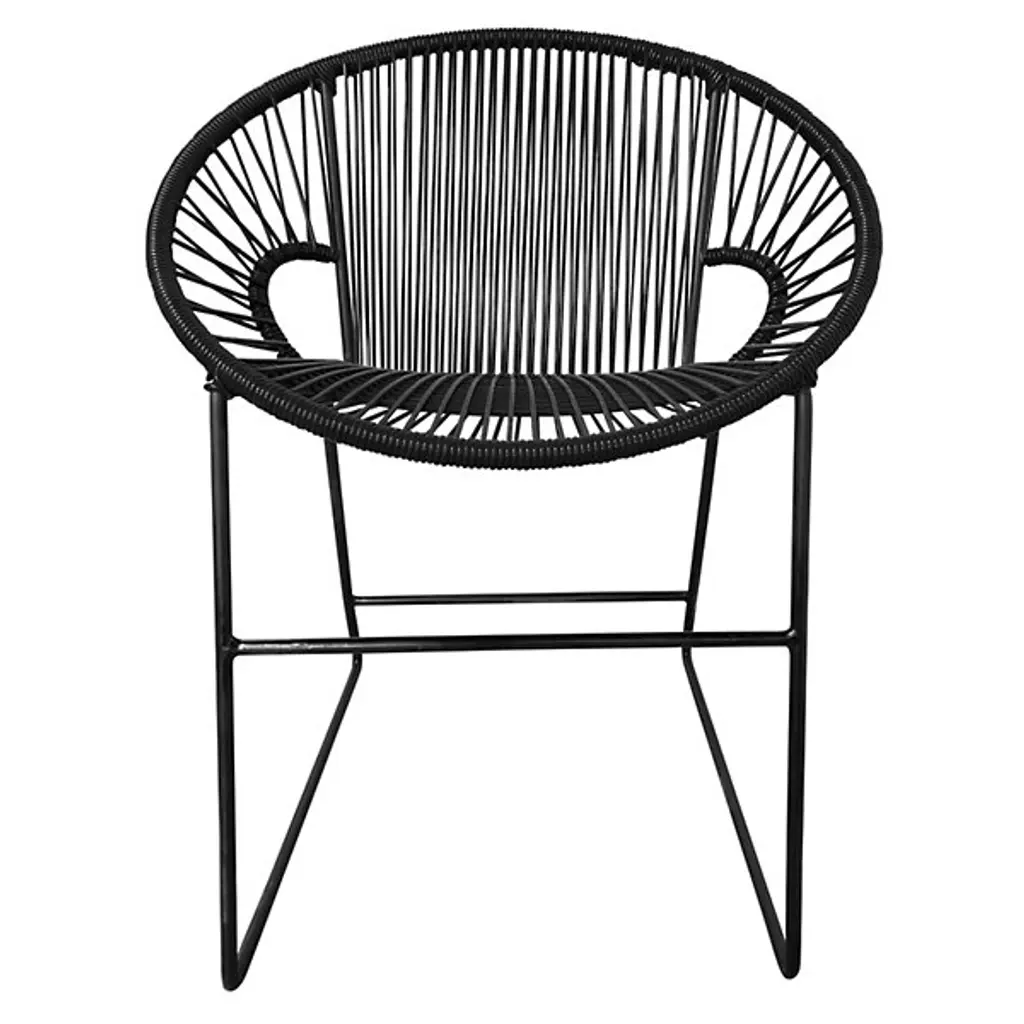 Comfortable, cool, versatile. Let your body seep into the cozy yet breathable design of the Puerto Dining Chair from Innit Designs. It's a refined piece perfectly suited for your indoor or outdoor dining arrangements. On a warm day, the open design of the backrest's hand wrapped vinyl cords provide support while letting air circulate to keep you cool. The circular frame outlining the backrest lets your arms rest comfortably on it, giving you a regal posture. The base of the steel frame adds to the open look in its minimalist construction.