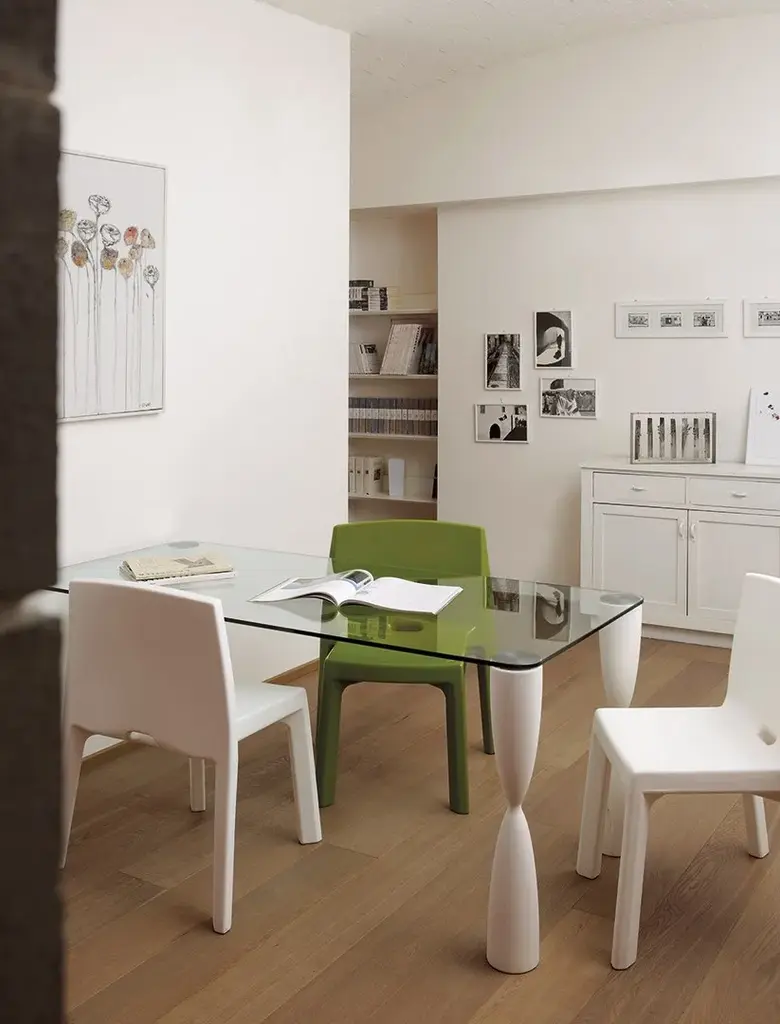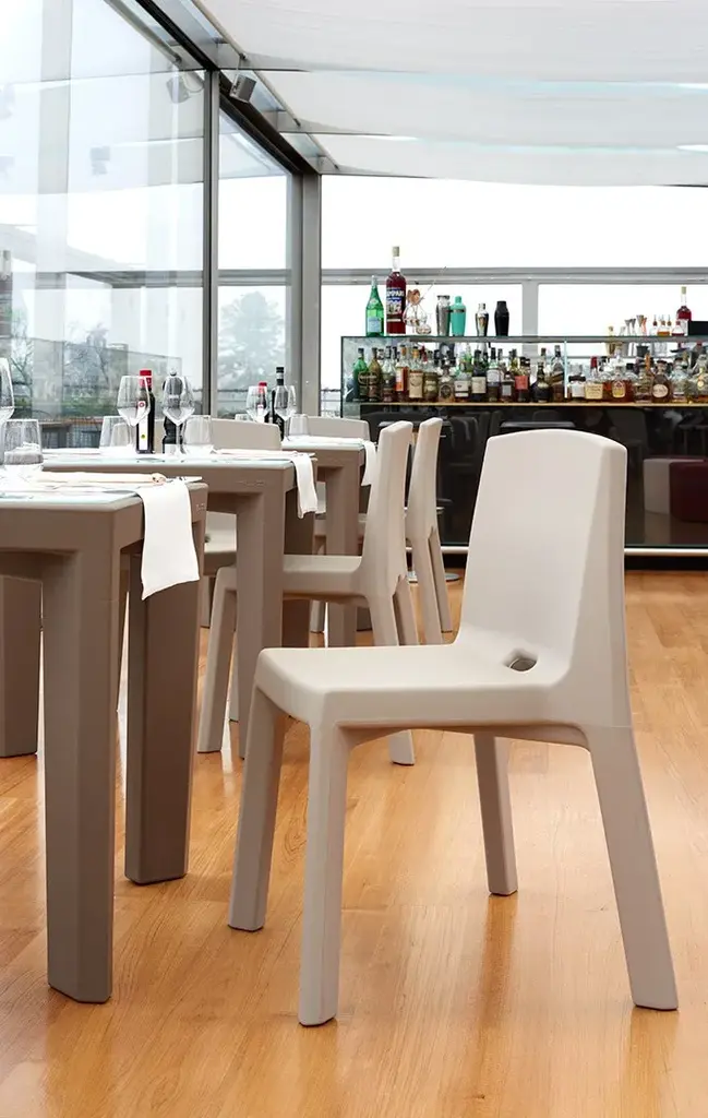 Q4 is a strong and functional chair designed by the eclectic designer Jorge Najera. Its simple and linear design creates a wide seat: Q4 hasn’t got armrests, so it is stackable. Its bent and thin profile makes Q4 chair particularly inviting suitable for indoor and outdoor, both for contract and informal events, or in kitchens and private gardens.