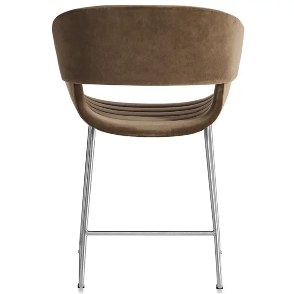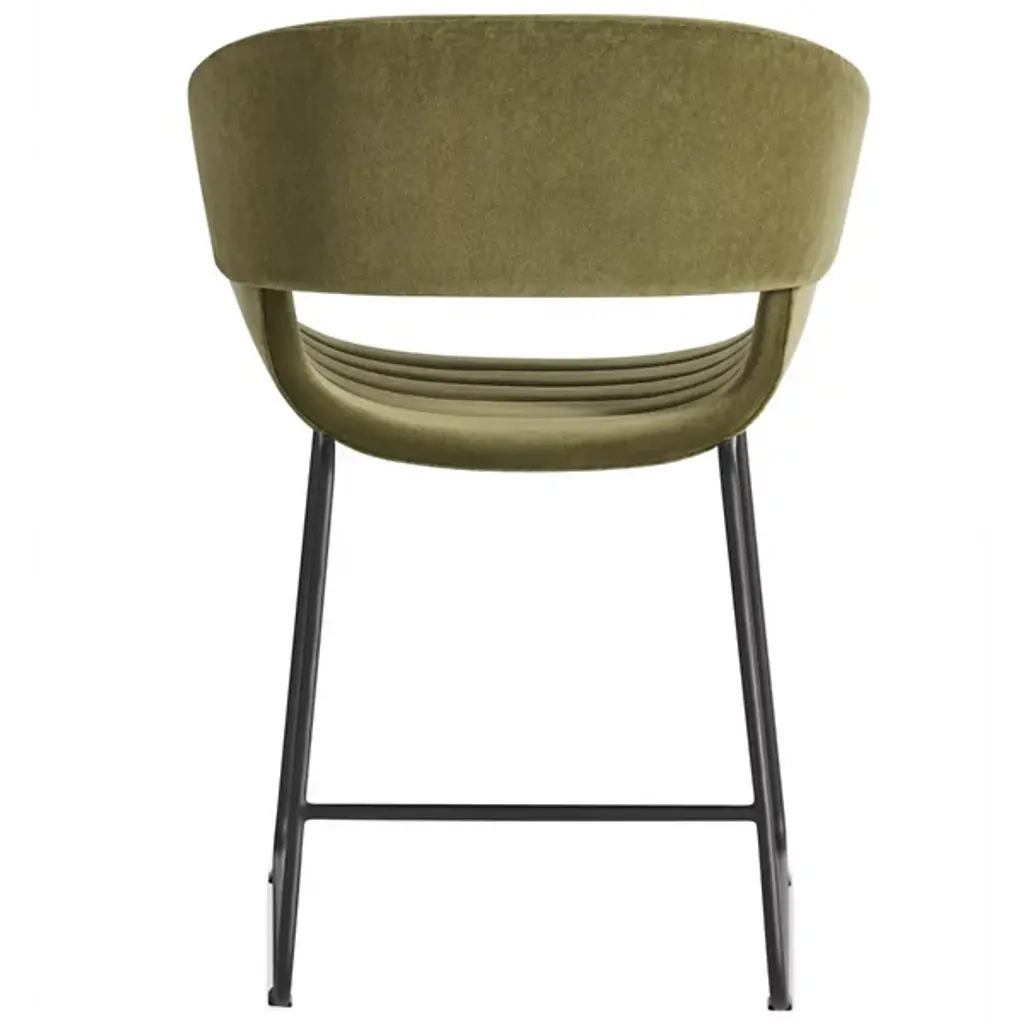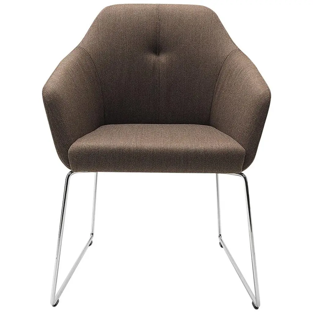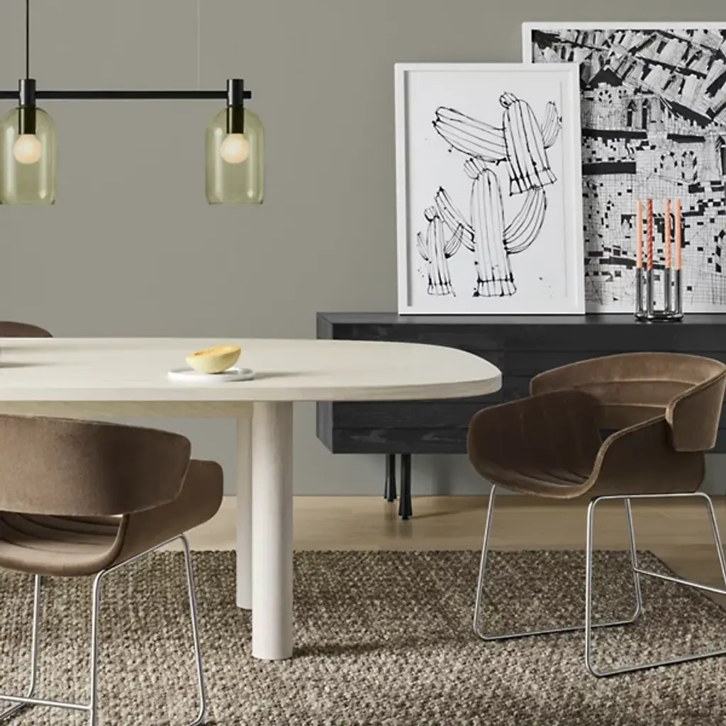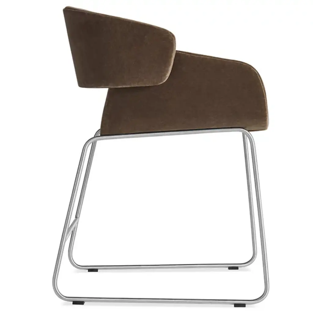 Clean, elegant, playful. The Racer Dining Chair from Blu Dot caresses your body like the bucket seat of an Italian supercar. It instantly catches your eye with a series of curves. Channel-stitched polyester applied to an overlapping back and seat rest flow from side to side with stylish flair. Filled with soft padding, the channel-stitched piece pleases as it wraps around one’s figure for a nestled feel. A minimalist steel base gives the soft polyester seat the appearance as if floating in the air. In a sled design, the base draws an eye-catching pair of graphic shapes.