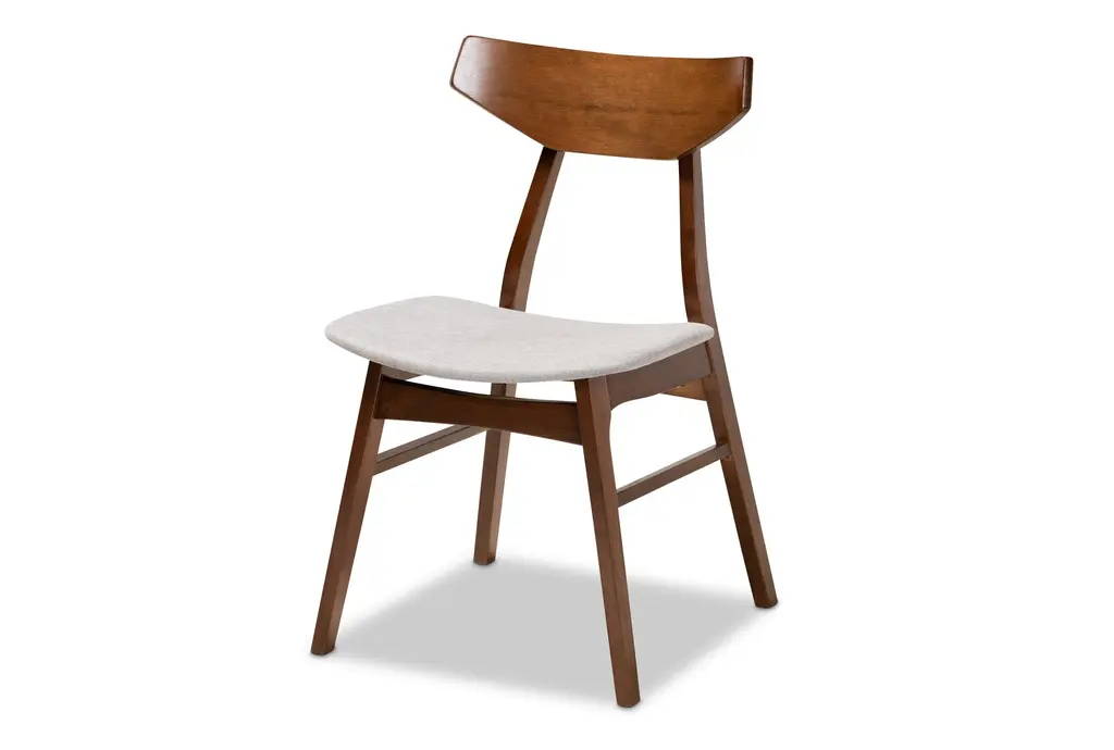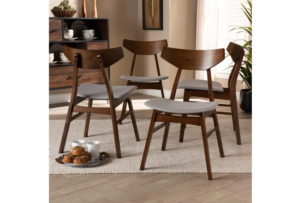 Enhance your dining experience with the Racer Light Grey Fabric Upholstered and Walnut Brown Finished Wood Dining Chair Set. This set of four armless chairs combines modern design with comfort, making it a perfect addition to your dining room or kitchen.