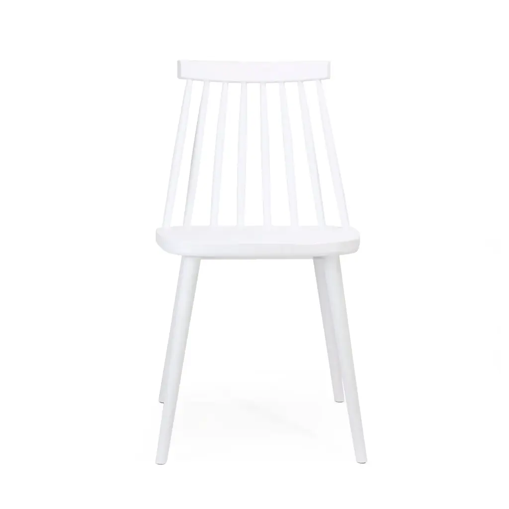 Bring a touch of farmhouse charm to your dining space with this set of 2 dining chairs, featuring classic spindle backs. Highlight the clean, crisp lines and streamlined shapes that focus on practical function. Trust the durable polypropylene plastic construction to support the spindle design and provide long-lasting sturdiness. Enjoy a blend of traditional style and exceptional durability with these elegantly crafted chairs.