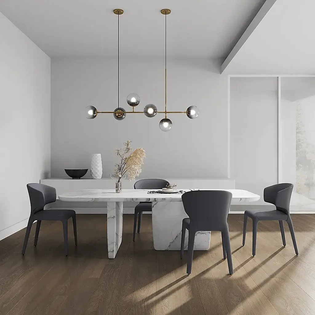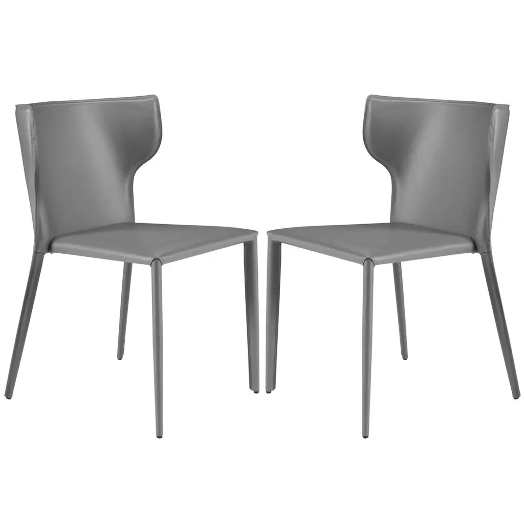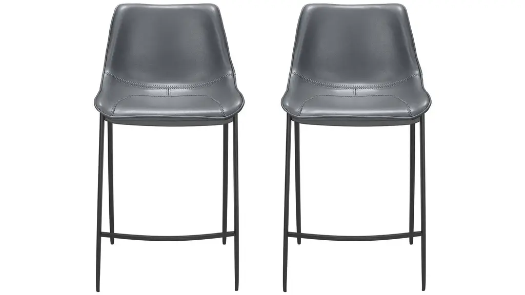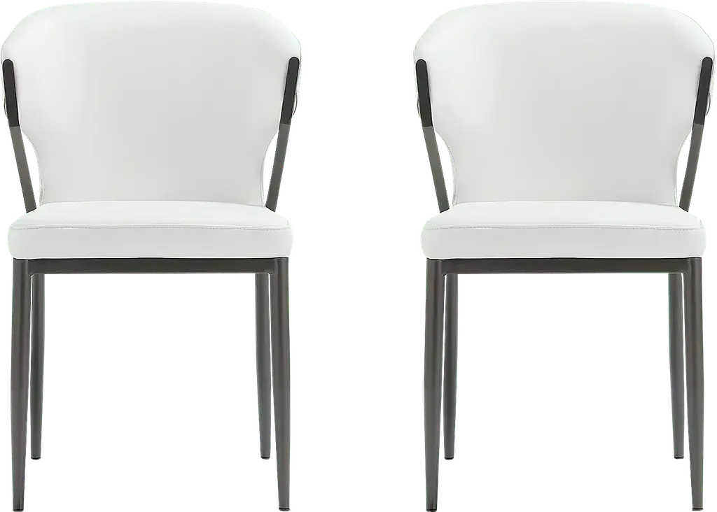 Clean lines accompany the Ravennite I gray side chair, set of 2, marrying functional comfort with a mid-century sophistication. Elevate your dining space with the supple faux leather luxury of this dining chair. This effortlessly chic dining chair offers a low, wrapped back with a gently cushioned seat to provide premium comfort and support, all while creating an upscale yet casual feel to your dining room, kitchen, or lounge space. The mid-century modern design radiates a versatility fitting multiple decor styles from upscale coastal, and contemporary farmhouse to urban industrial and eye-catching glam decor.