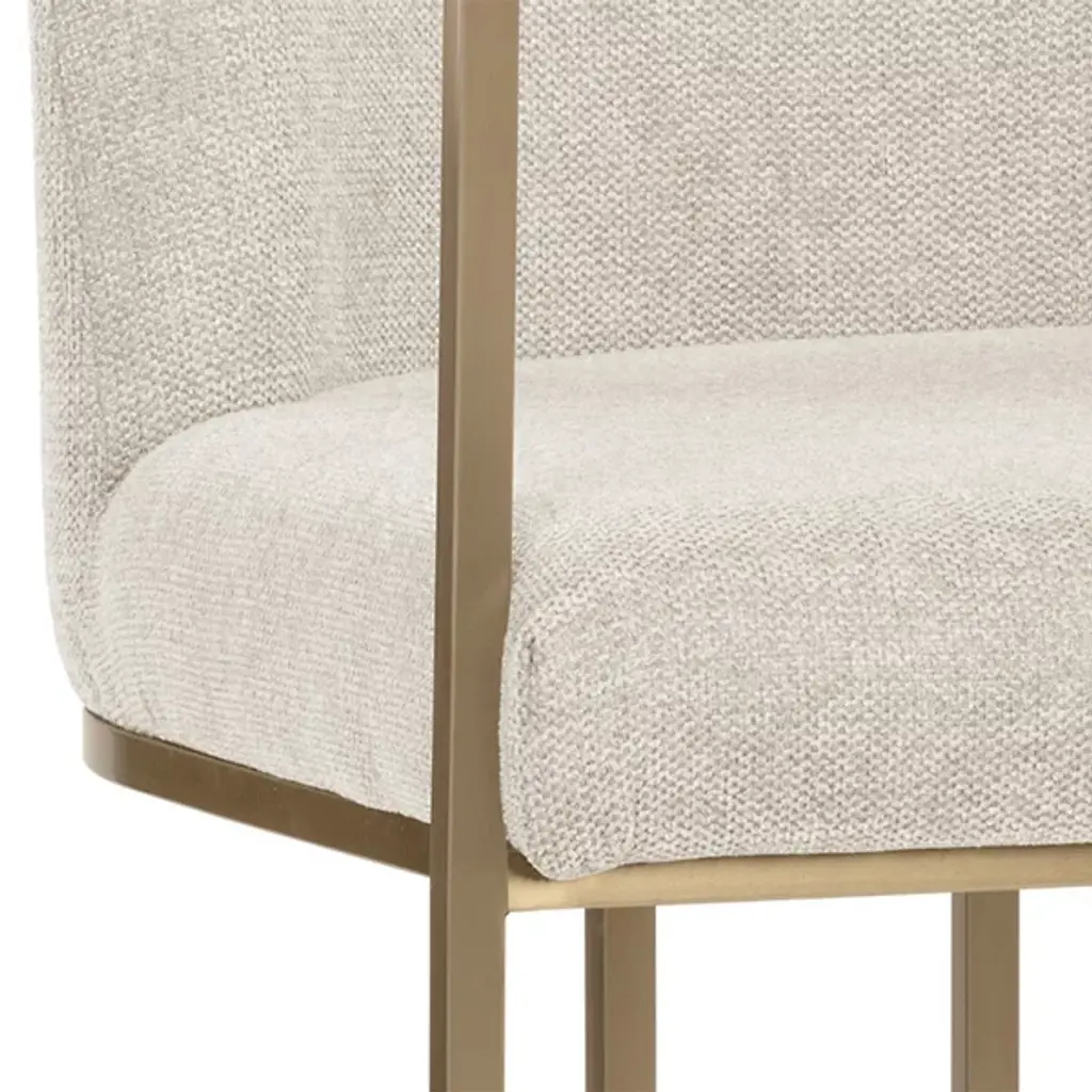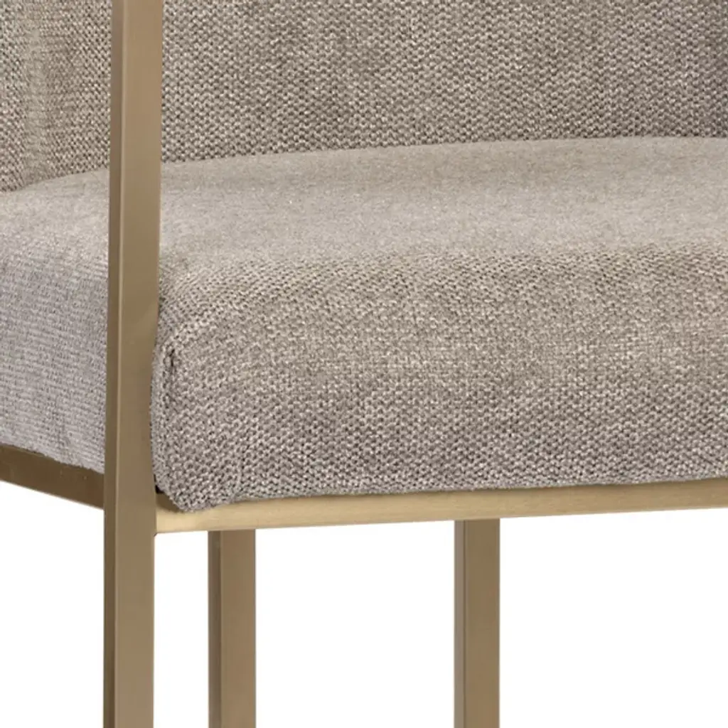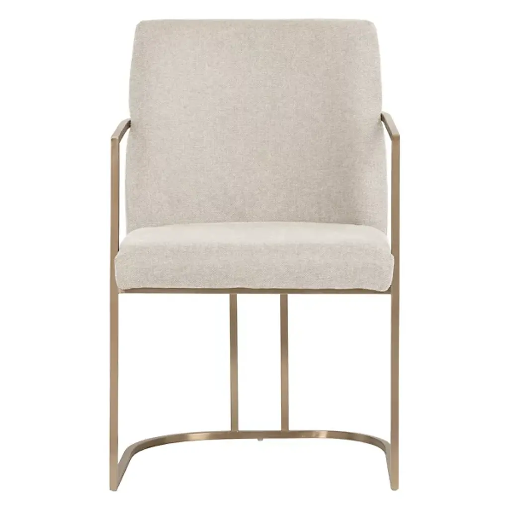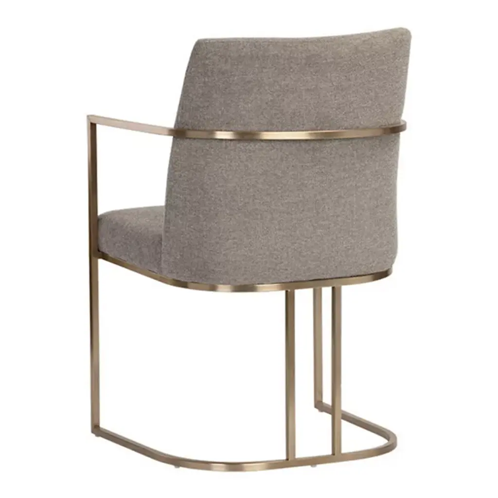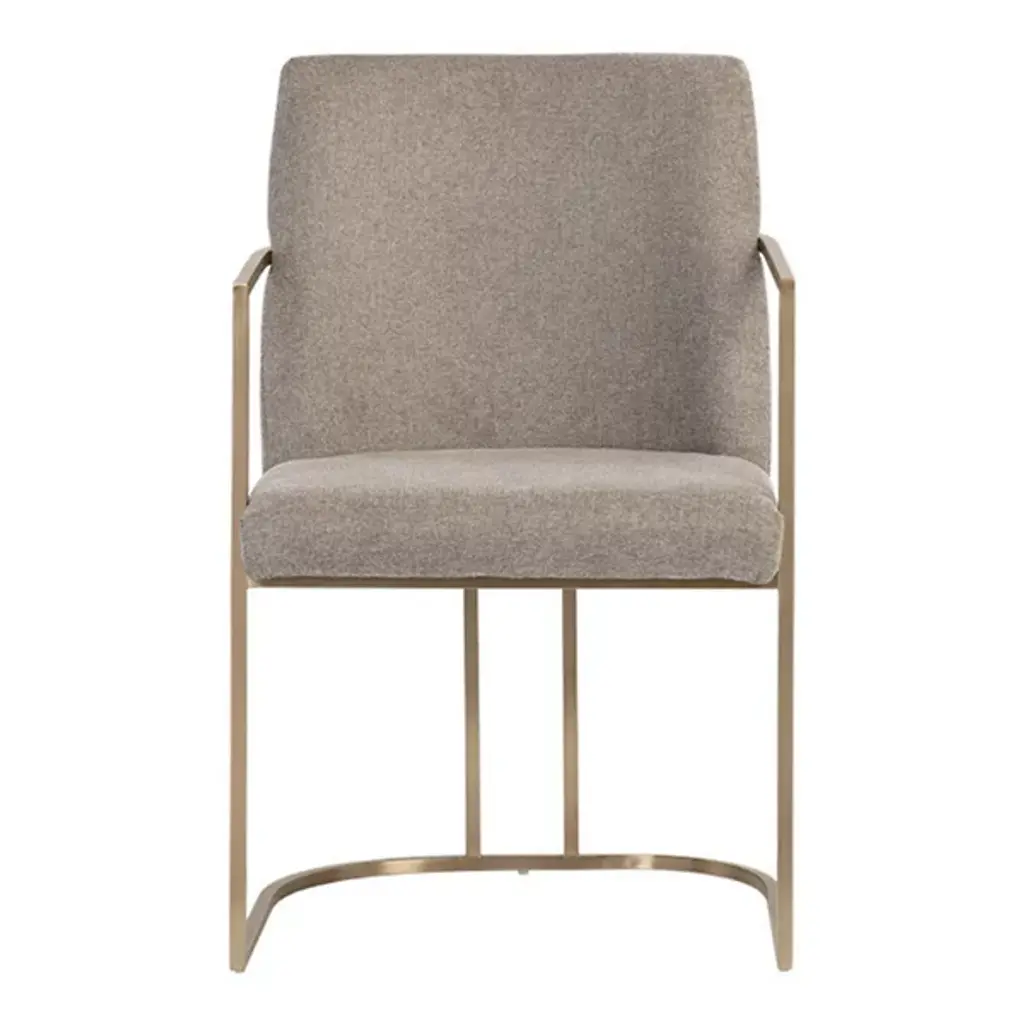Enjoy your next meal with the Rayla Dining Armchair from Sunpan. This dining armchair is defined by its sophisticated, linear form. A frame of stainless steel boasts lovely contours at its base for a mid-century modern look. A fabric seat and seatback are geometrically shaped for postural support. The Rayla Dining Armchair’s fabric is composed of 95% polyester and 5% nylon for your comfort. Sharply angled armrests give this chair a finishing touch.