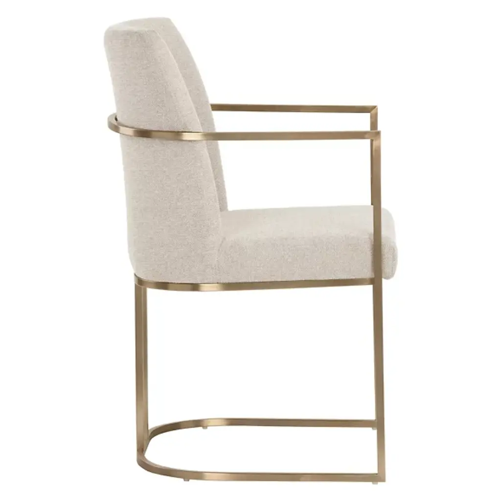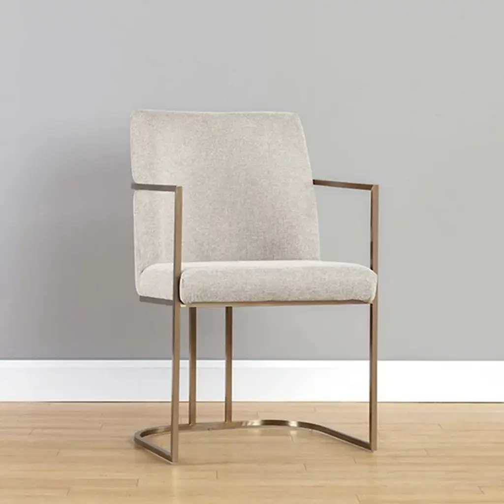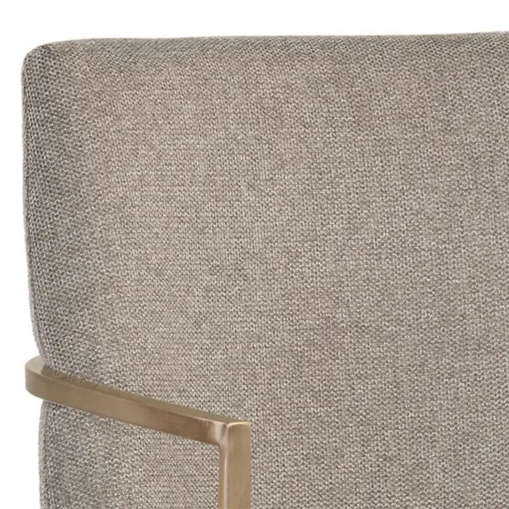 Enjoy your next meal with the Rayla Dining Armchair from Sunpan. This dining armchair is defined by its sophisticated, linear form. A frame of stainless steel boasts lovely contours at its base for a mid-century modern look. A fabric seat and seatback are geometrically shaped for postural support. The Rayla Dining Armchair’s fabric is composed of 95% polyester and 5% nylon for your comfort. Sharply angled armrests give this chair a finishing touch.