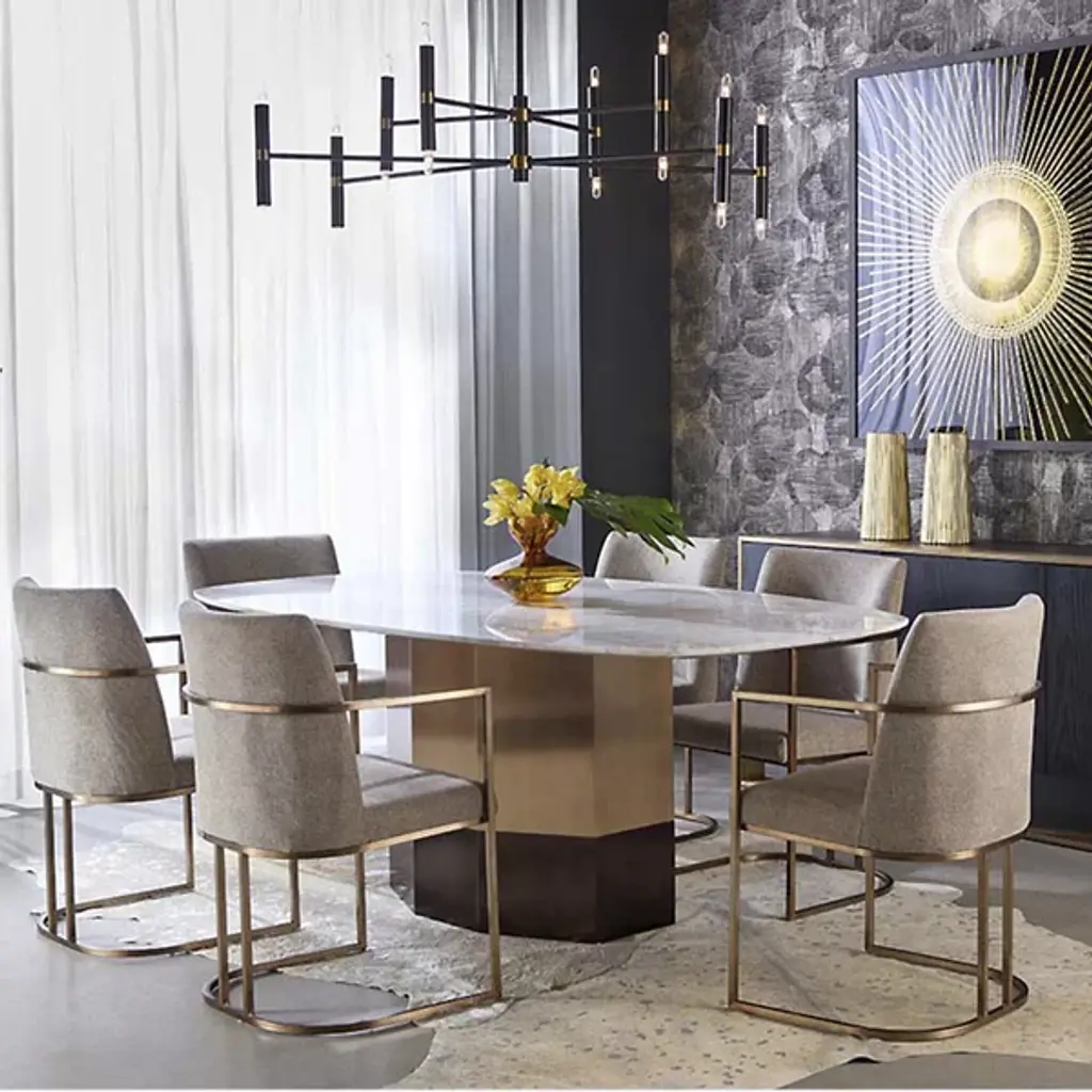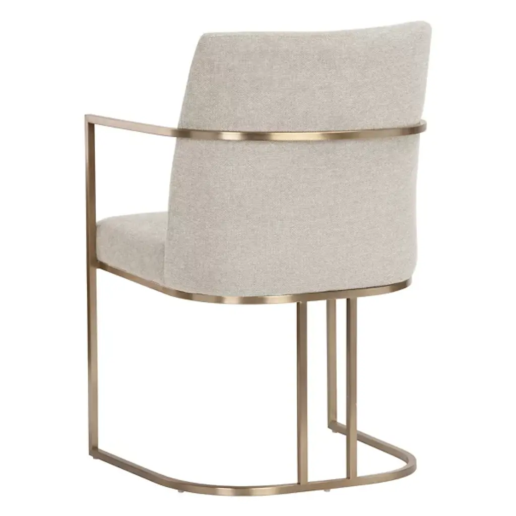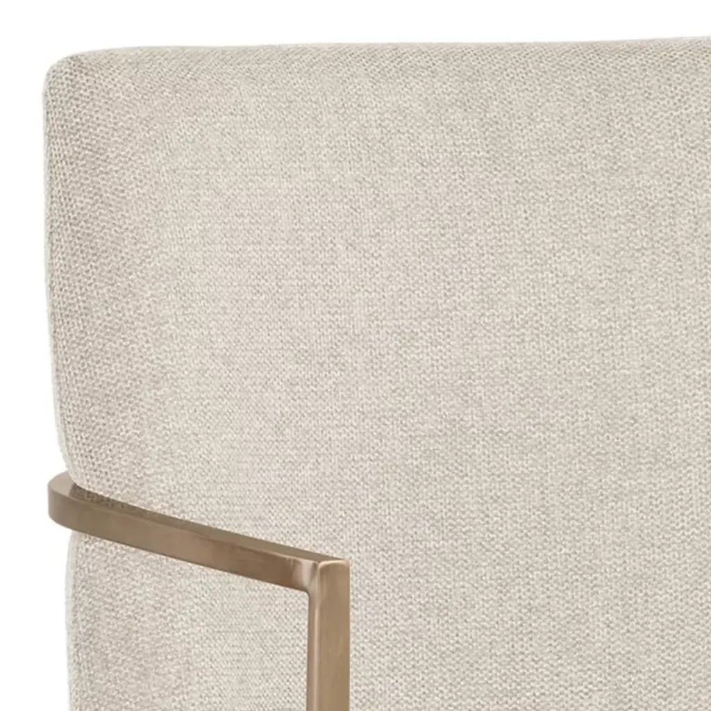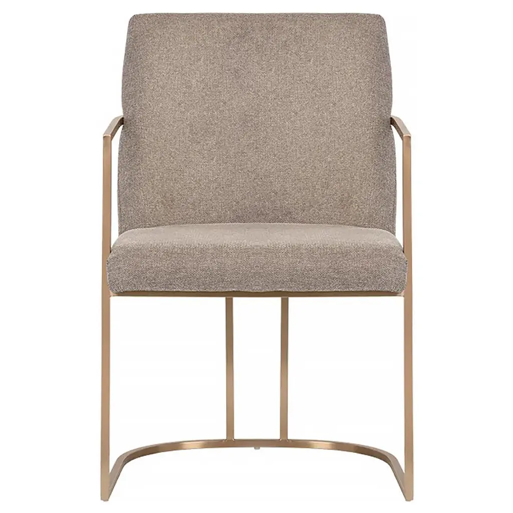 Enjoy your next meal with the Rayla Dining Armchair from Sunpan. This dining armchair is defined by its sophisticated, linear form. A frame of stainless steel boasts lovely contours at its base for a mid-century modern look. A fabric seat and seatback are geometrically shaped for postural support. The Rayla Dining Armchair’s fabric is composed of 95% polyester and 5% nylon for your comfort. Sharply angled armrests give this chair a finishing touch.