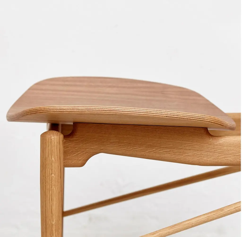 Reading Chair by Finn Juhl - Timeless Elegance and VersatilityOriginally designed in 1953 and relaunched in 2015, the Reading Chair by renowned Danish designer Finn Juhl is an iconic piece that brings together simplicity, elegance, and functionality. Crafted with meticulous attention to detail, this chair embodies the perfect balance of form and function, offering both style and comfort for any modern space.Design Excellence The Reading Chair is a testament to Finn Juhl's genius, known for his ability to create furniture that is both visually stunning and highly functional. This chair features a unique design that allows for multiple sitting positions, providing unparalleled comfort whether you're seated facing the front or the back. Its versatility makes it an ideal addition to your dining room or reading nook, adapting to your needs with ease.While the original model featured an upholstered seat, this relaunch includes a veneered seat, harking back to the chair's first iteration designed for the Bovirke company. The updated design offers a sleek, natural look that complements a range of interior styles. The Reading Chair combines understated elegance with intricate details that make it stand out in any room.Unpretentious, Yet Sophisticated With its simple yet refined structure, the Reading Chair transcends the typical boundaries of functional furniture. Finn Juhl’s approach was to design a chair that feels unassuming yet carries the mark of true craftsmanship. Its aesthetic appeal is enhanced by the sculptural form, allowing it to stand freely as a piece of art, while remaining practical and versatile.Color Variations and Product Information Please note that while some of the product images show alternative colors or variations, the version for sale is shown in the first image. Due to the nature of digital screens, colors may vary slightly from what you see on your device, as each screen displays colors differently. Rest assured, we strive to showcase our products as accurately as possible, and your piece will reflect the quality and craftsmanship Finn Juhl is known for.About Finn Juhl Finn Juhl, born in Copenhagen on January 30, 1912, is widely regarded as the father of Danish Modern design. His innovative and sculptural approach to furniture design has made him a revered figure in the design world. Juhl’s career highlights include designing the complete interior of the Trusteeship Council Chamber at the UN headquarters in New York between 1951 and 1952, and he remains an international icon of modern design. His work fused modernism in art with functionalism in architecture, creating furniture that is not only beautiful but also deeply practical.About House of Finn Juhl Since 2001, House of Finn Juhl has held the exclusive rights to manufacture and relaunch Finn Juhl's masterpieces, continuing his legacy with great respect for the original designs and uncompromising quality. Each piece in the collection is crafted with meticulous attention to detail, ensuring that every chair, table, and piece of furniture carries the distinct signature of Finn Juhl's timeless vision.Embrace the beauty of Danish Modern design with the Reading Chair, a versatile and visually stunning addition to any home. Elevate your space with a piece that combines history, craftsmanship, and enduring style.