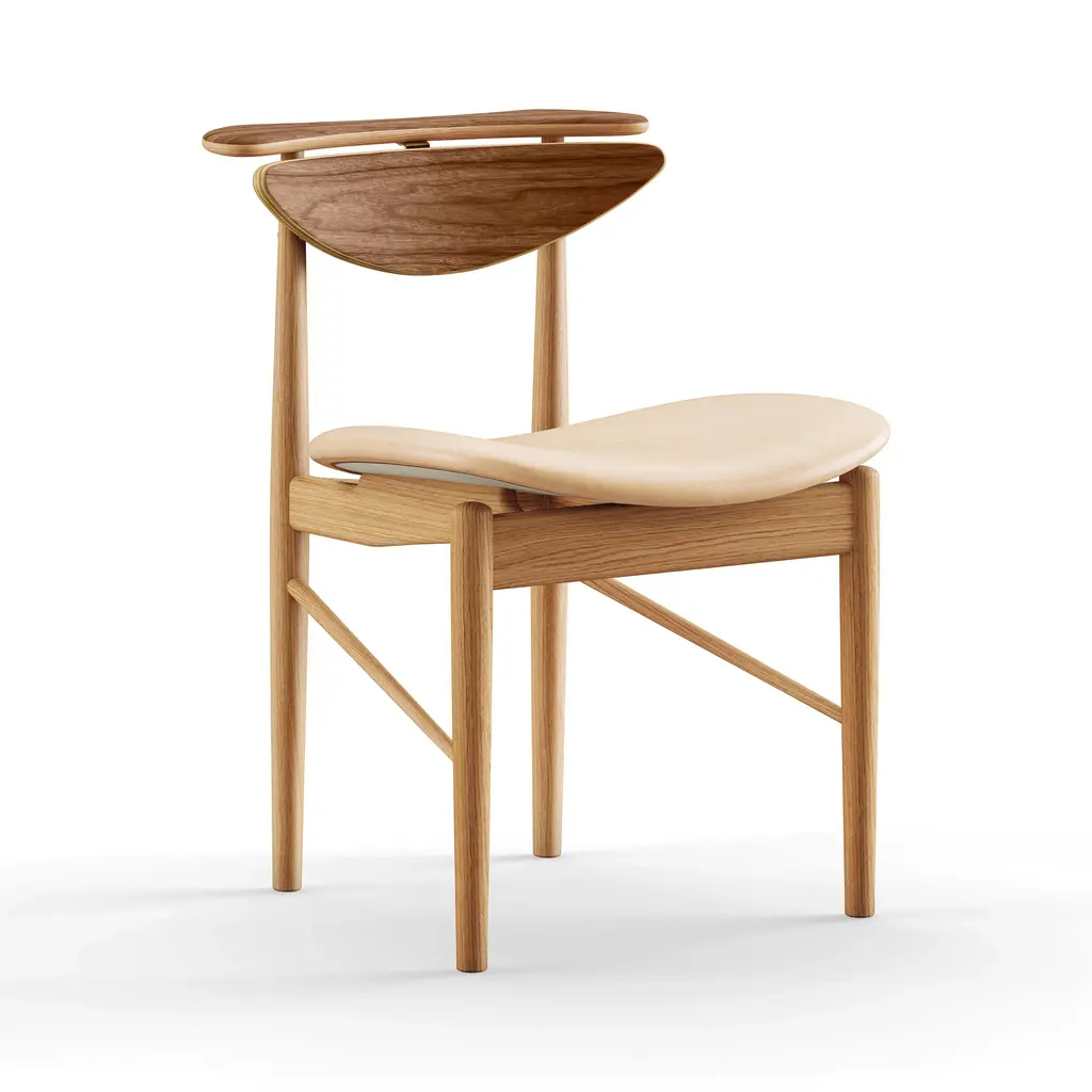 The Reading Dining Chair from House of Finn Juhl embodies timeless style and sophistication. With an impeccably designed, visually pleasing silhouette, this chair is perfect for any décor, from private homes to restaurants and conference facilities. Crafted from a combination of oak and walnut with a black painted finish, it brings an exclusive touch of sophistication and elegance to any space. Highlights