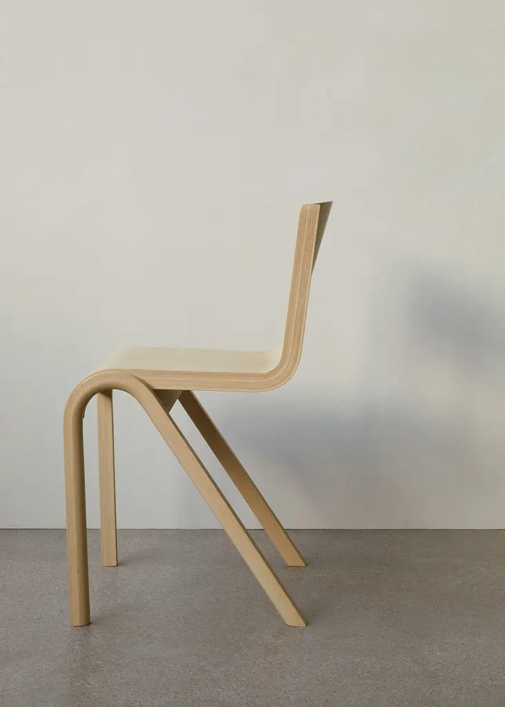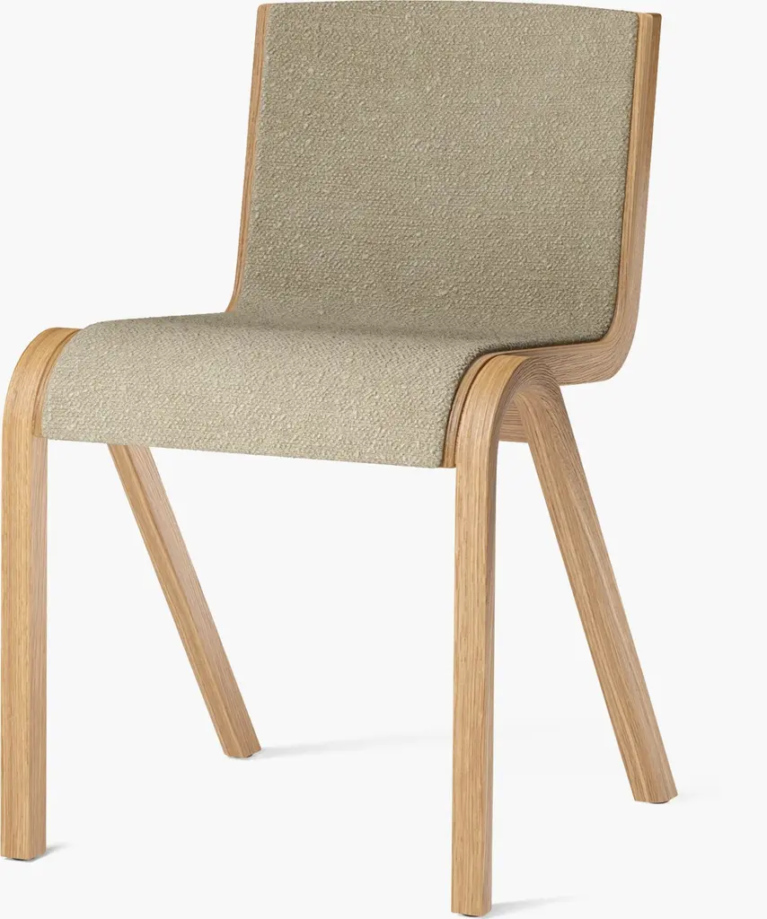 Elegance and utility merge in the Ready Dining Chair (2021), designed by Matias Møllenbach and Nick Rasmussen for Audo Copenhagen. Its cantilevered seat and supportive backrest sit on anterior legs that keep you balanced and comfortable while maintaining a visual lightness. Ready can be joined together in a row or stacked up to 10 chairs high, making it an easy solution for holiday hosting as well as everyday living. Made in China.