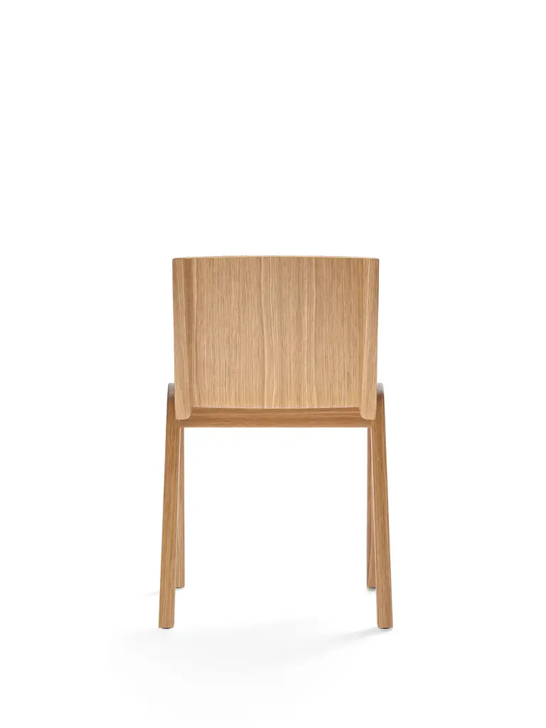 The result of a study of the possibilities of form-pressing techniques, Ready Chair, created for Audo by Matias Møllenbach and Nick Rasmussen, takes its cues from classic free-swing chair designs, its cantilevered seat and backrest appearing as if suspended on air. Available in FSC™-certified oak veneer, it comes with a natural or red stained oak finish and with the option of an upholstered seat and back. Perfectly sized for use as a dining chair, its stackable design and row-connecting feature make it equally suited to a multitude of other uses. The Ready Dining Chair can be stacked 4 chairs on the ground and up to 15 chairs on a trolley. Stacking works with or without the row connection.