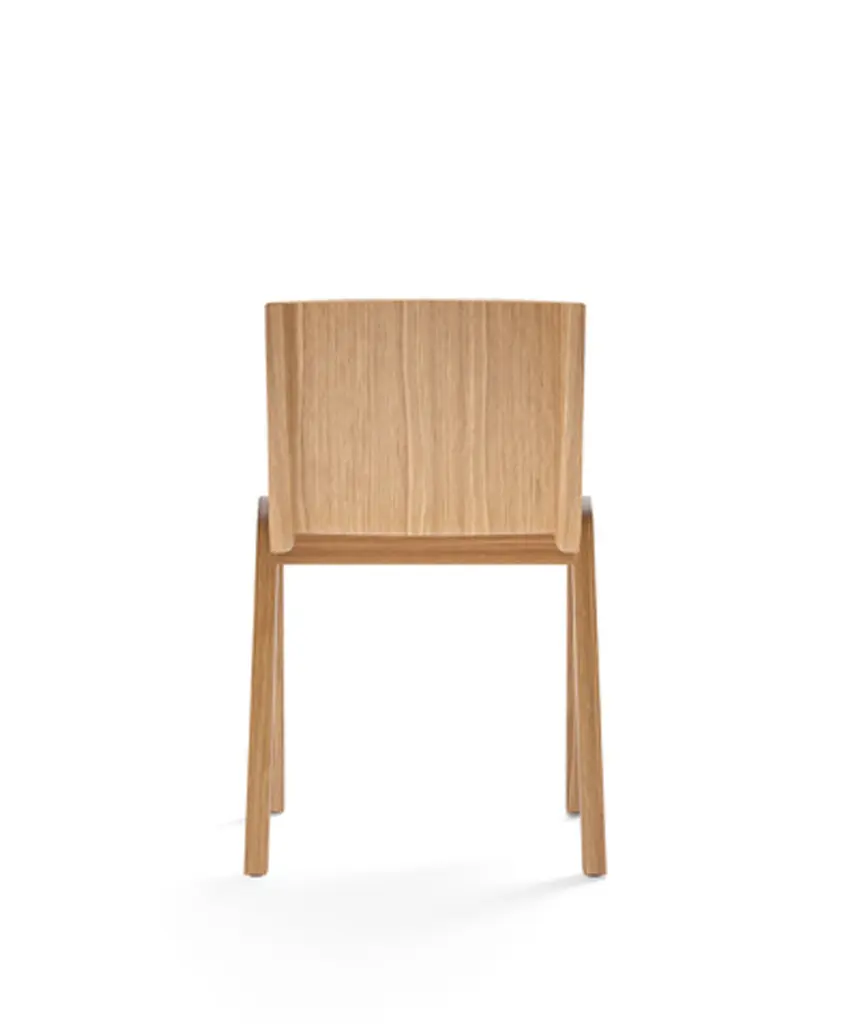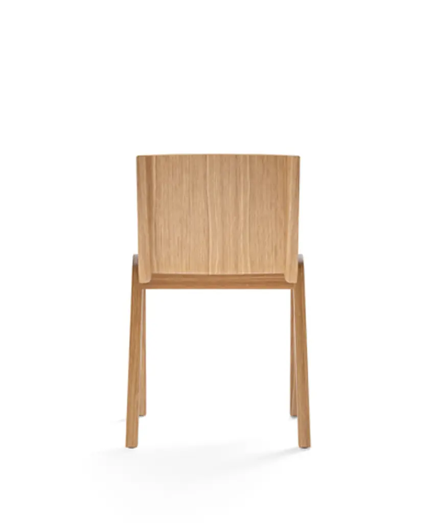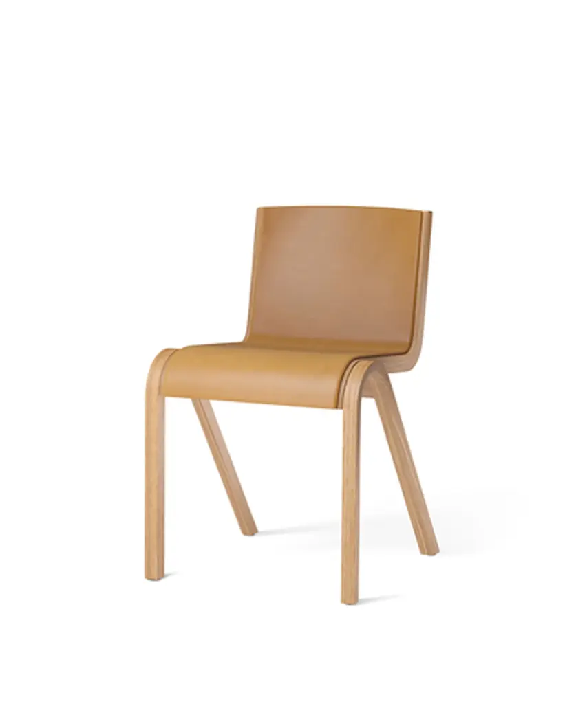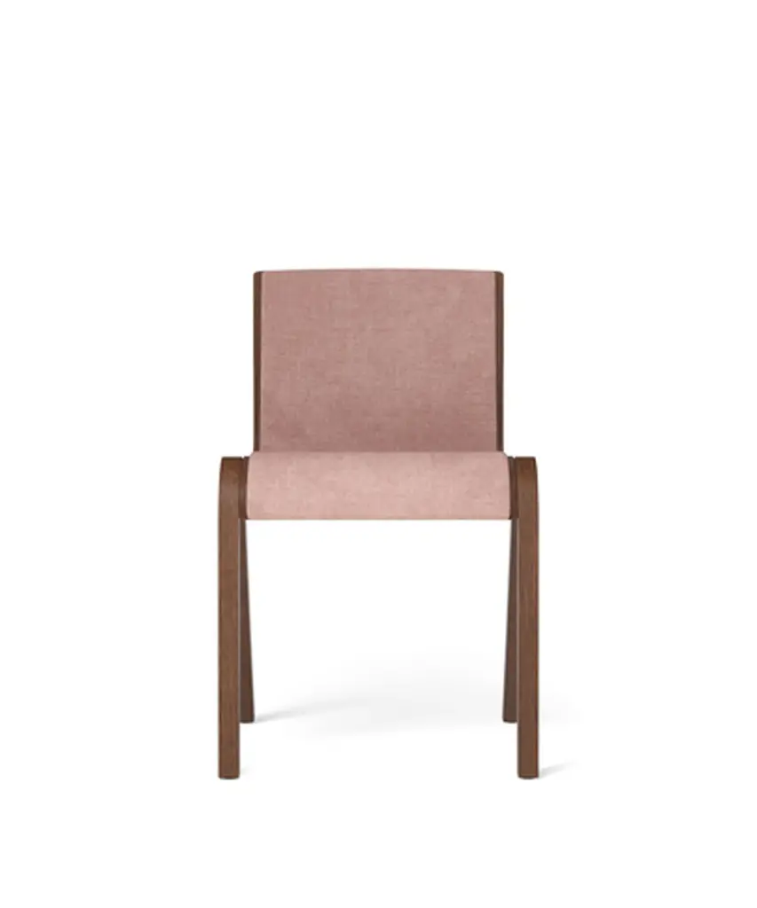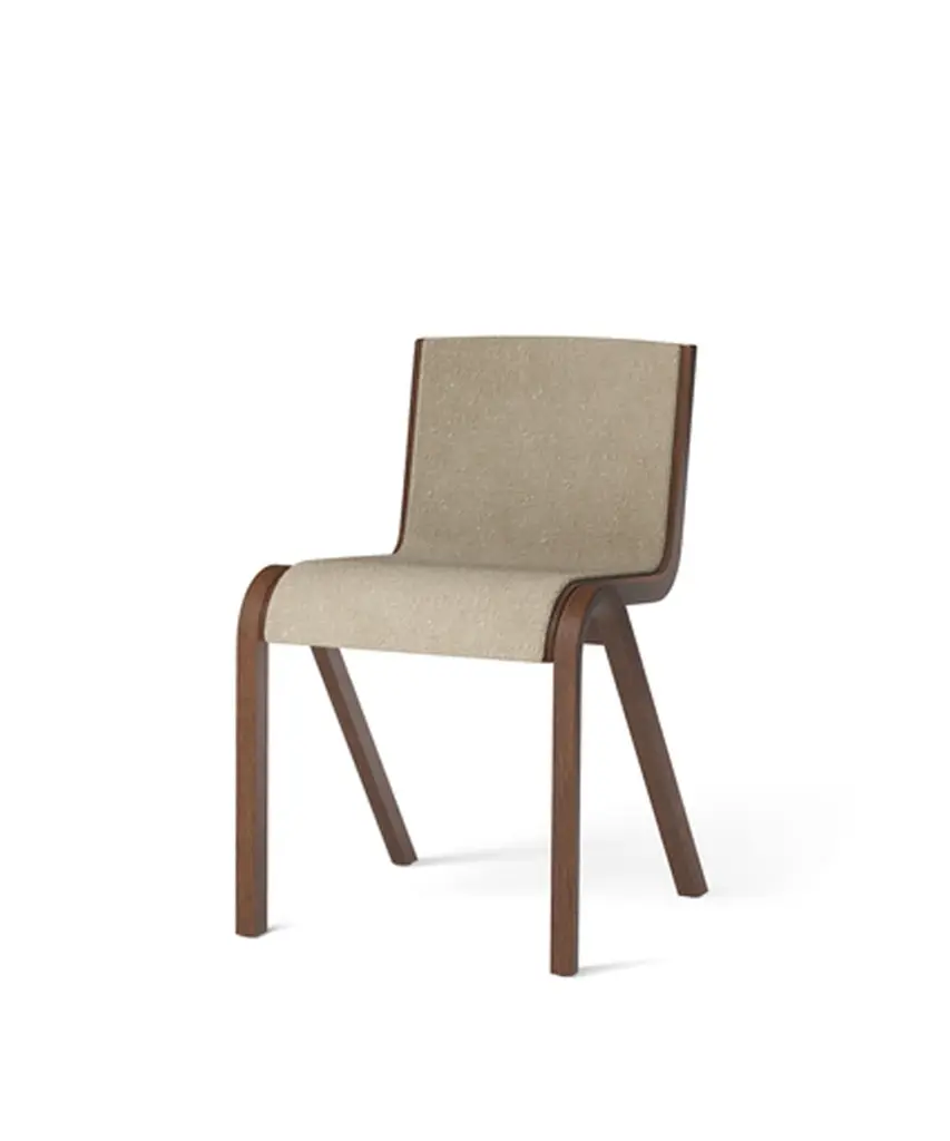Deceptively simple in its design yet featuring a wealth of details, Ready's cantilevered seat and backrest appear as if suspended on air. Curved anterior legs add to the sense of lightness while visible joints draw the eye. Shaped from FSC-certified oak veneer, it is offered in a natural or red stained oak with a water based lacquered finish and offered with or without seat or full front upholstery, the pared-back dining chair showcases precise craft and natural materials to functionally beautiful effect. As an added feature, the upholstery can easily be changed by loosening 4 screws. Row Connection allows you to join individual Ready Dining Chairs together in a line, making it ideal for use in conference facilities. The bracket is made of strong aluminium and is easy to connect and disconnect. It can be turned under the seat when not in use. The Ready Dining Chair can be stacked with 10 chairs with and without the Row Connection. Designed by Matias Mdiallenbach And Nick Rasmussen for Audo Copenhagen North America.