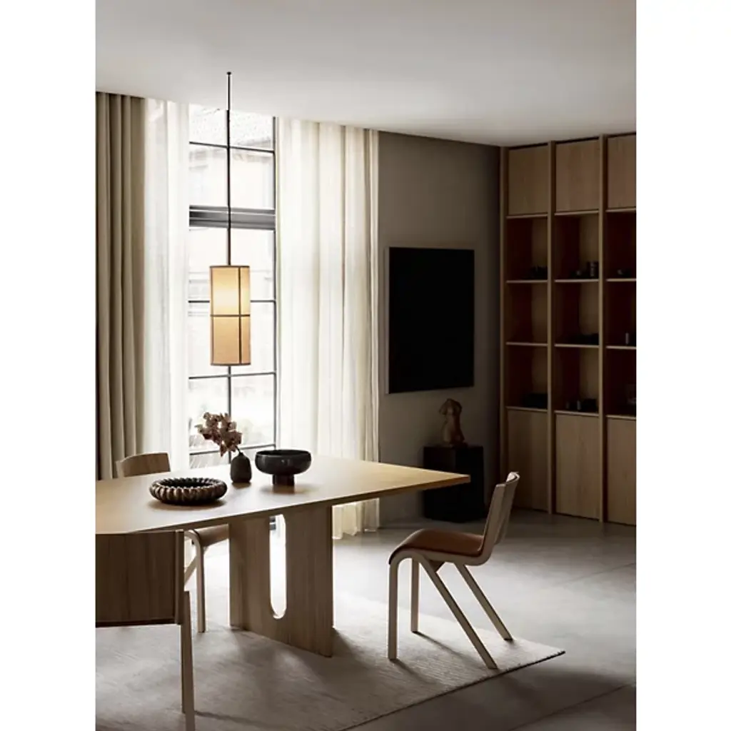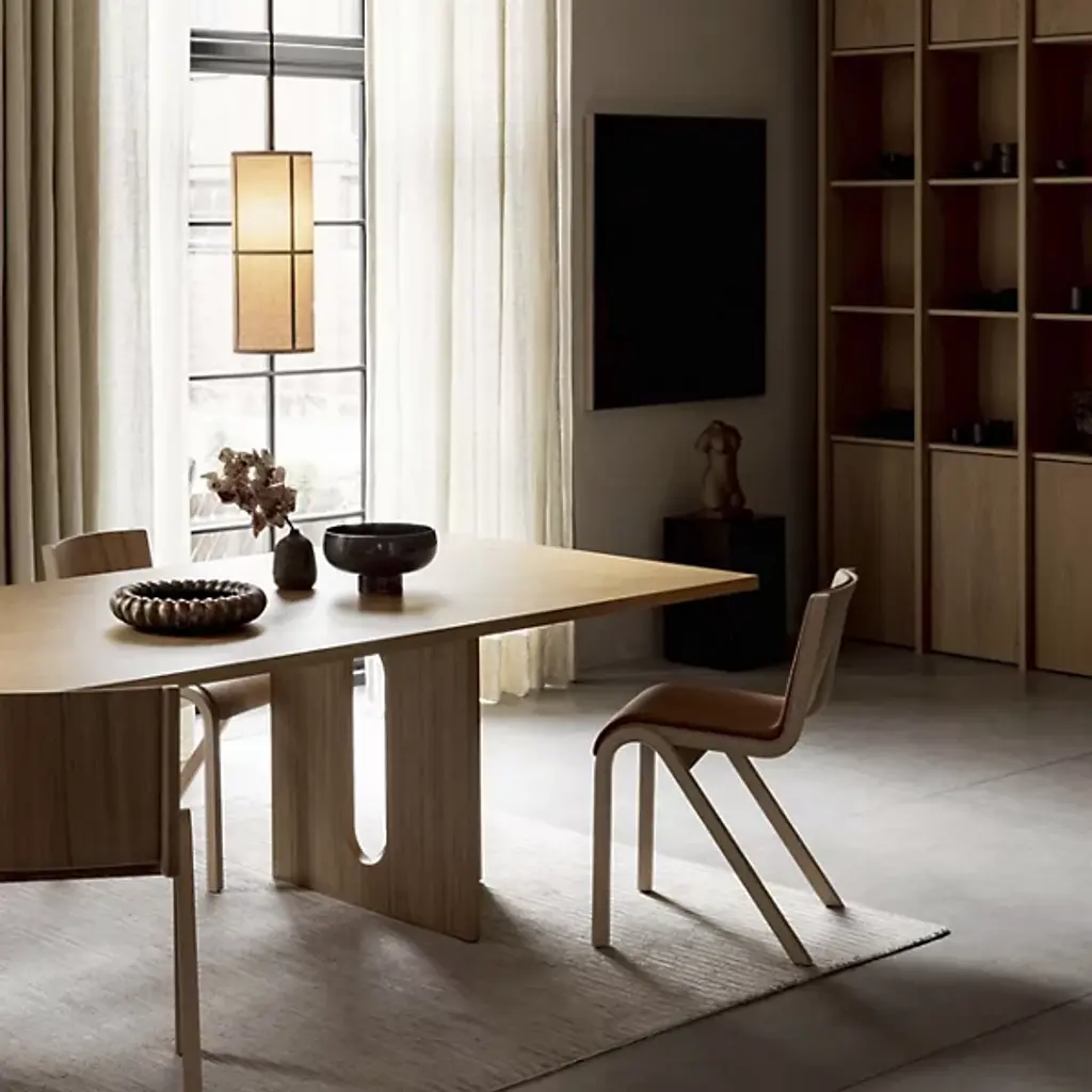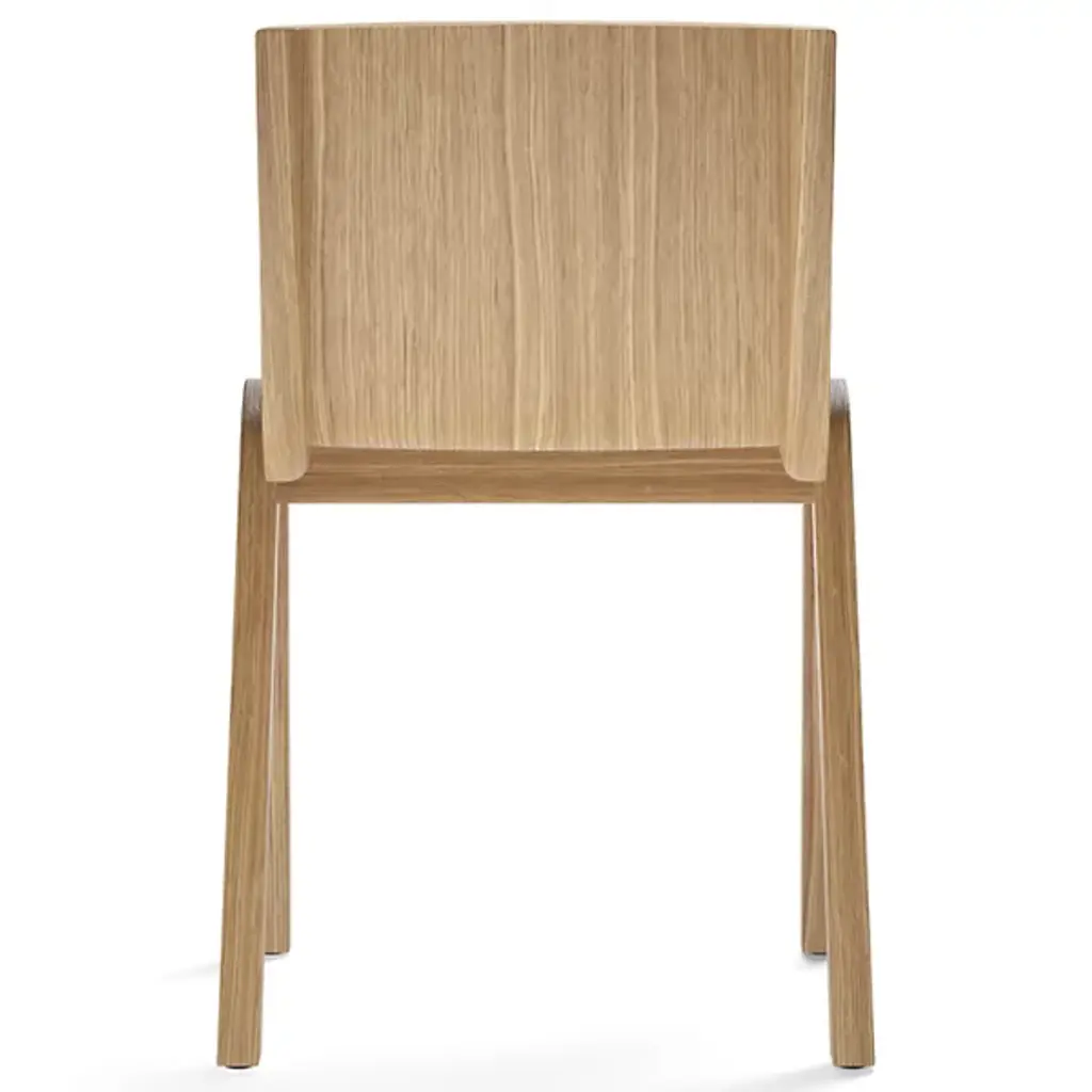 Fluid comfort at a moment’s notice. Entertain and tidy up after with ease with the sculptural and stackable Ready Fully Upholstered Dining Chair from Audo Copenhagen, formerly known as Menu. Design duo Matias Møllenbach and Nick Rasmussen work together to create timeless objects with distinct forms. Here, Møllenbach and Rasmussen draw inspiration from the floating silhouette of the classic cantilevered chair. This Scandinavian-style dining chair’s gestural wood framework seduces with an elegant grain texture. The framework’s refined curves make stacking easy, while a connecting mechanism on the side lets them be fixed in a row. Resting on top, a seamless form-pressed shell feels tailored to the body from the back to the knees. High resiliency foam adds comfort while powder-coated steel offers support. PA plastic glides allow for easy movement.