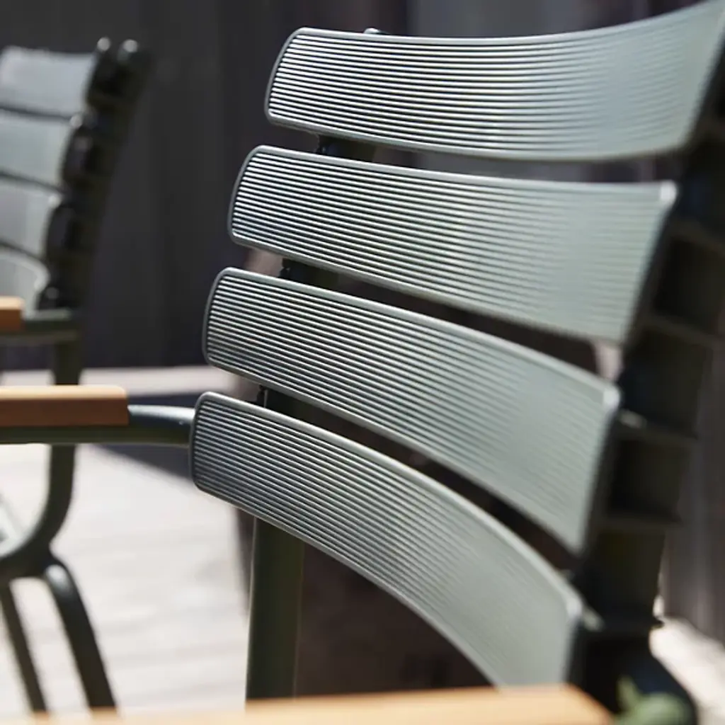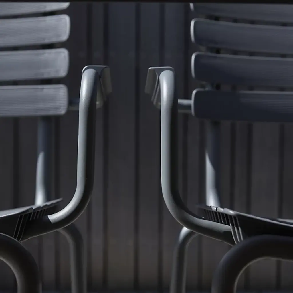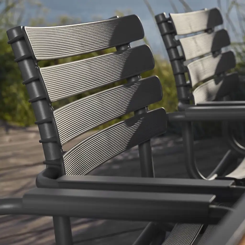 One man’s trash is another man’s treasured chair. Crafted from household plastics collected across Denmark, the ReCLIPS Outdoor Dining Chair Set of 2 from Houe represents the beautiful marriage of Danish design and innovation. The chair’s contoured framework produces soft curves that complement those of the body. Crafted from powder-coated aluminum, the lightweight framework proves resilient in the elements. The plastic slats laying on top blend processed recycled plastics with a UV treatment for top to bottom durability. The moisture-wicking, air-circulating slats hug the body with comfort and allow the piece to stack when not in use.