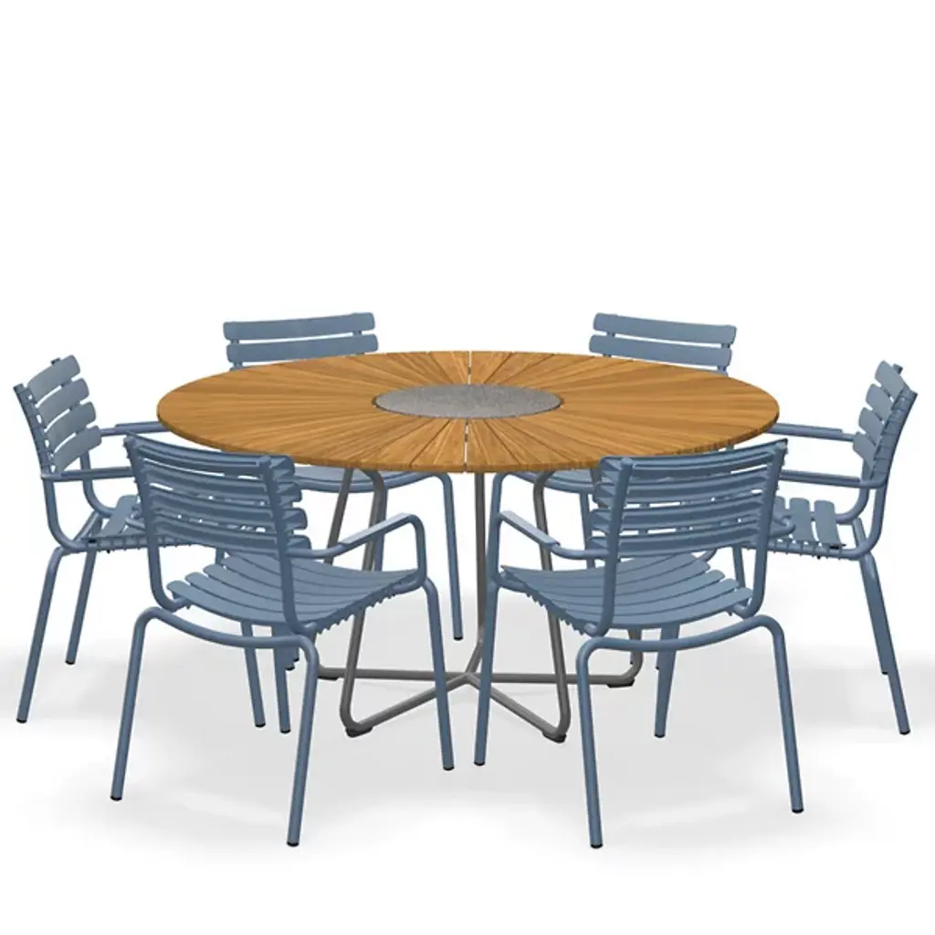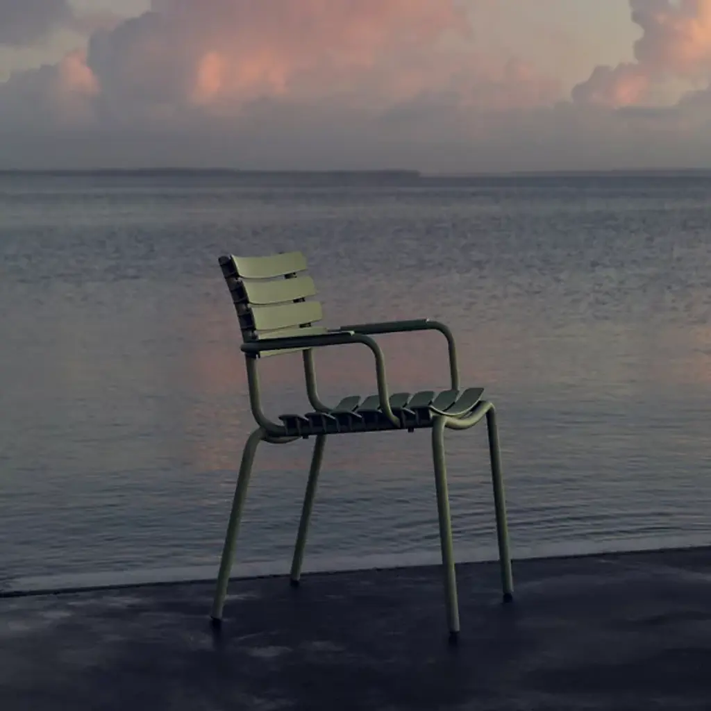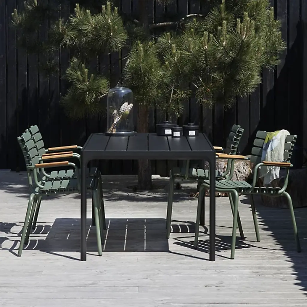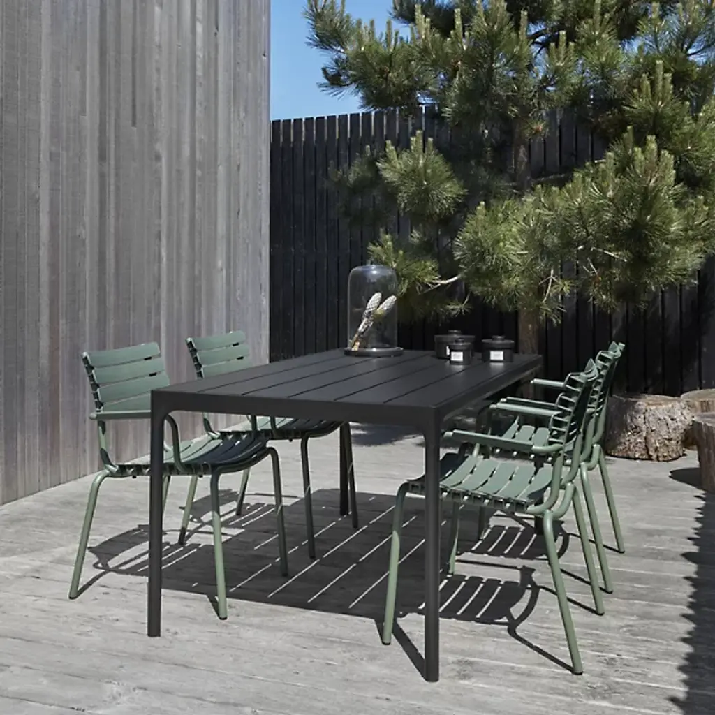 One man’s trash is another man’s treasured chair. Crafted from household plastics collected across Denmark, the ReCLIPS Outdoor Dining Chair Set of 2 from Houe represents the beautiful marriage of Danish design and innovation. The chair’s contoured framework produces soft curves that complement those of the body. Crafted from powder-coated aluminum, the lightweight framework proves resilient in the elements. The plastic slats laying on top blend processed recycled plastics with a UV treatment for top to bottom durability. The moisture-wicking, air-circulating slats hug the body with comfort and allow the piece to stack when not in use.