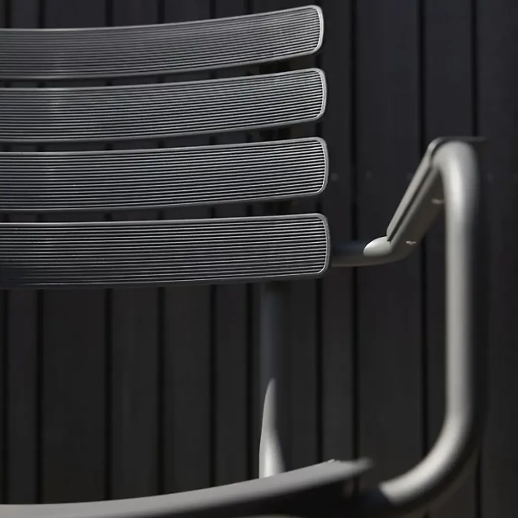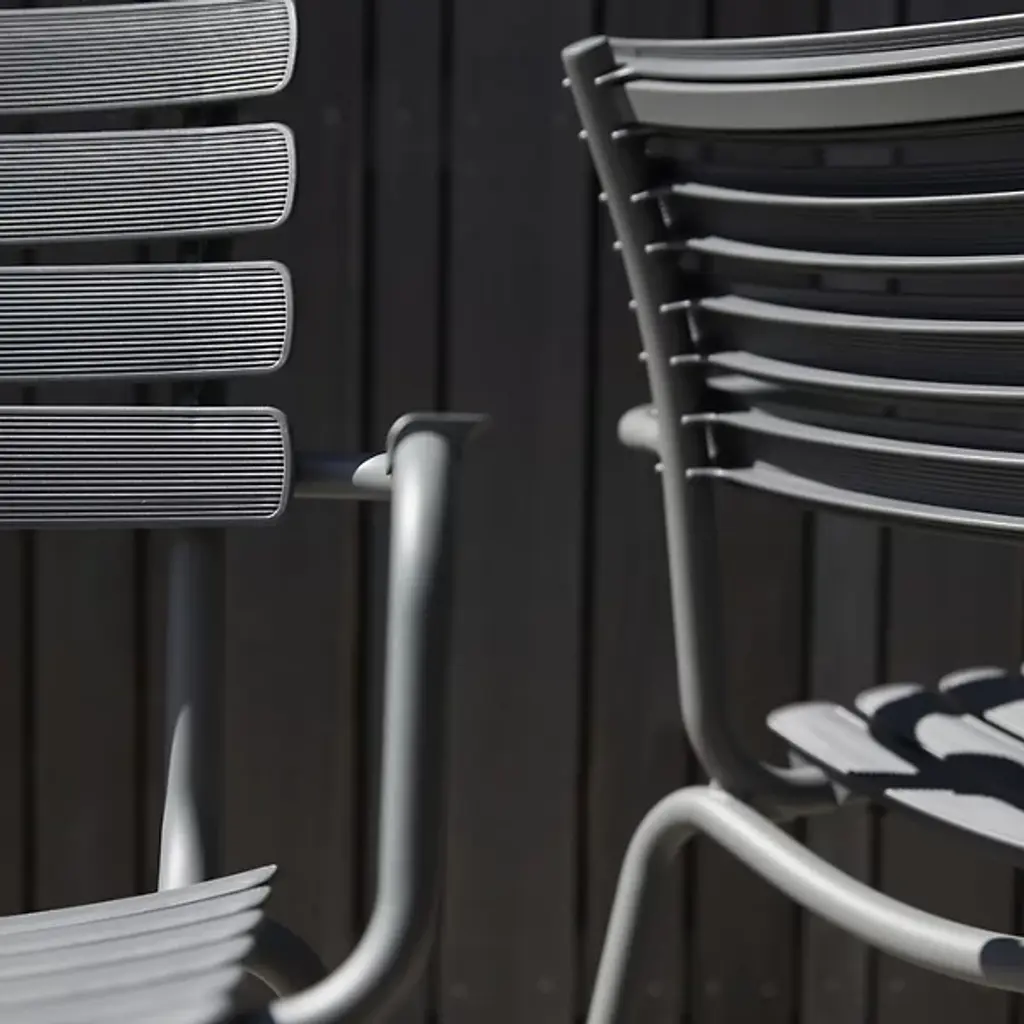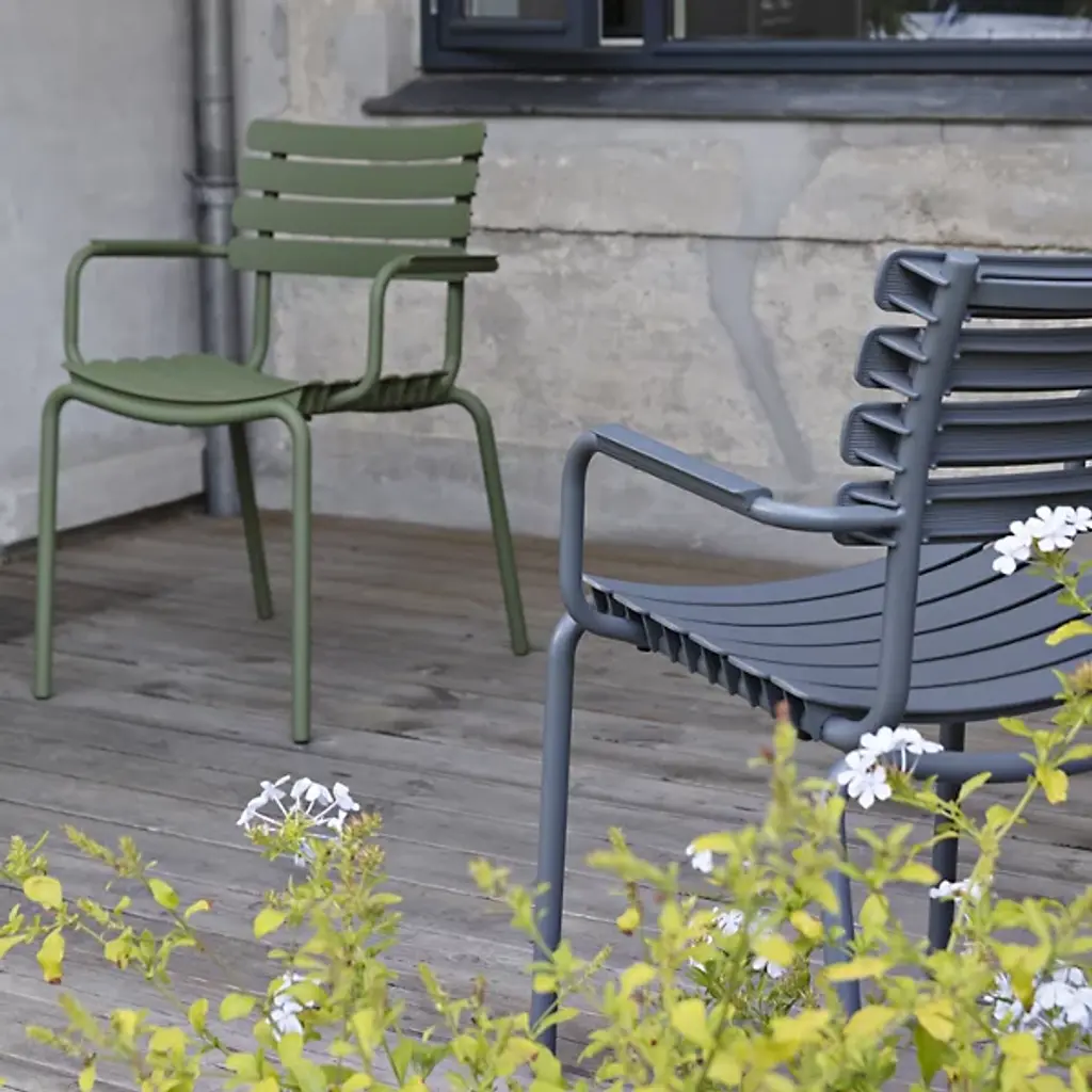One man’s trash is another man’s treasured chair. Crafted from household plastics collected across Denmark, the ReCLIPS Outdoor Dining Chair Set of 2 from Houe represents the beautiful marriage of Danish design and innovation. The chair’s contoured framework produces soft curves that complement those of the body. Crafted from powder-coated aluminum, the lightweight framework proves resilient in the elements. The plastic slats laying on top blend processed recycled plastics with a UV treatment for top to bottom durability. The moisture-wicking, air-circulating slats hug the body with comfort and allow the piece to stack when not in use.