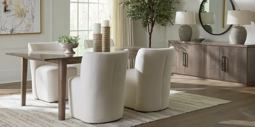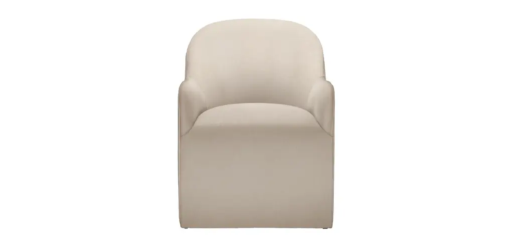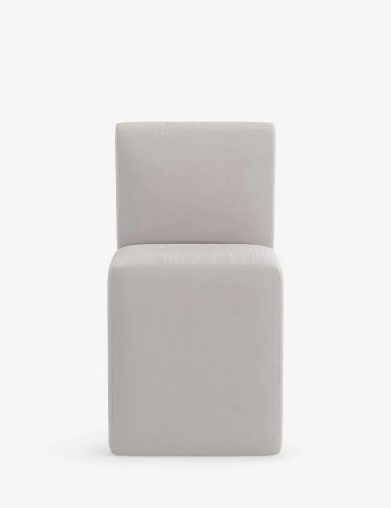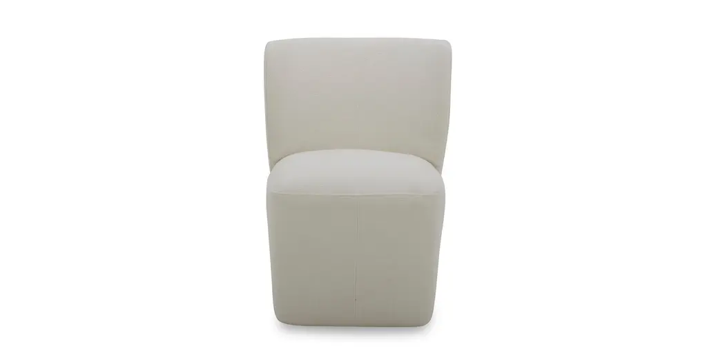 Offering a warm yet modern welcome, the Reed upholstered dining chair shows off a simple silhouette to coordinate with a variety of dining styles. The fully upholstered chair combines subtle curves with a tight back, all wrapped up with an easy-care fabric to bring chic comfort to your dining space. Choose from Cloud or Pearl performance fabric. Recessed casters provide easy movement.