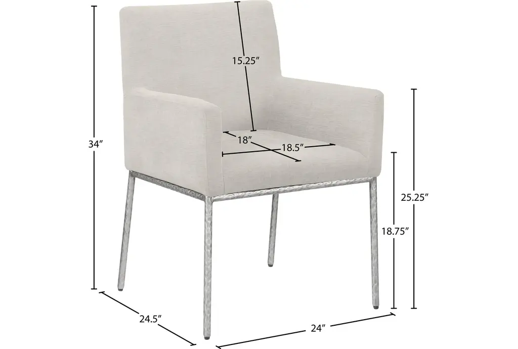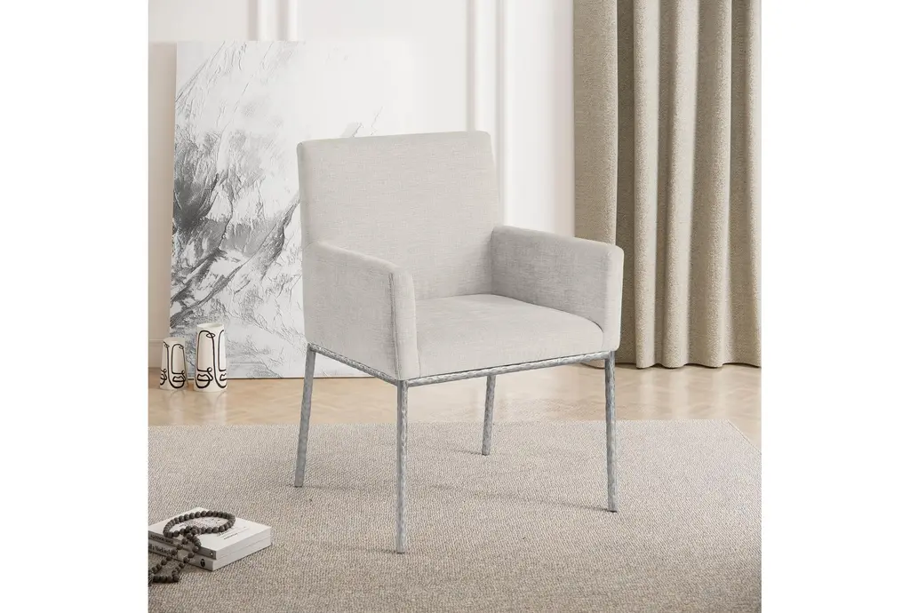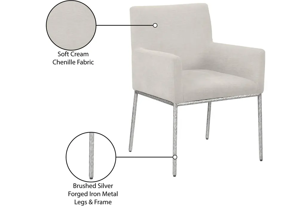 Reeves Cream Chenille Fabric Dining Chair With Brushed Silver Finish Set Of 2