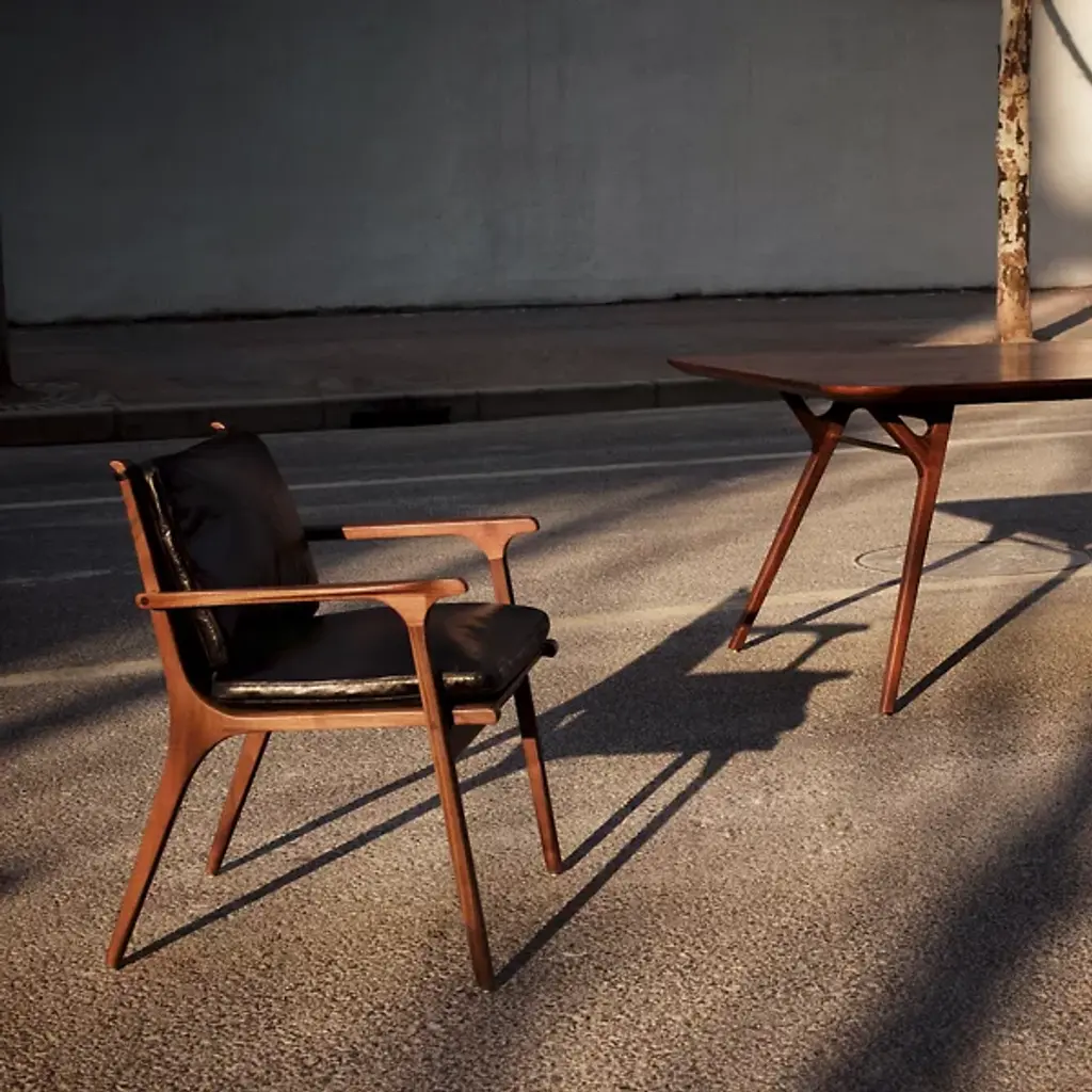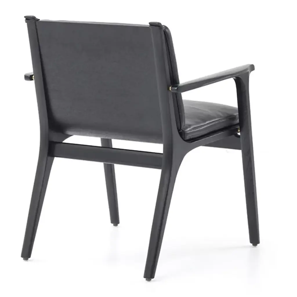 The Rén Dining Armchair by Stellar Works is a well-crafted, handsome addition to spaces. Created in the Danish Modern tradition, balancing thoughtfully crafted design and high quality to bring a blend of form and function that is accessible to all, this armchair comes from multi-disciplinary studio Space Copenhagen. Stained ash and leather combine to create a comfortable seat, incorporating crafted techniques and attention to detail from traditions used in Japan and China for a beautiful, supportive frame that looks good from any angle.