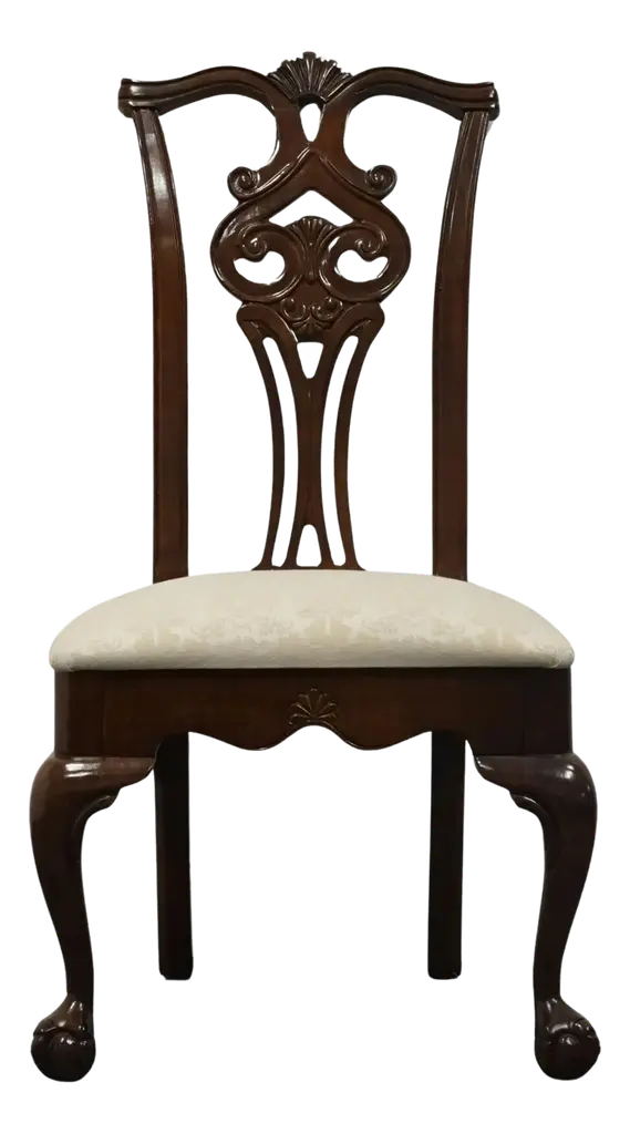 From the Hollis Collection, a custom Baroque style armchair in an ebonized finish. Side Chair also available. 1 yard customer’s own material.
