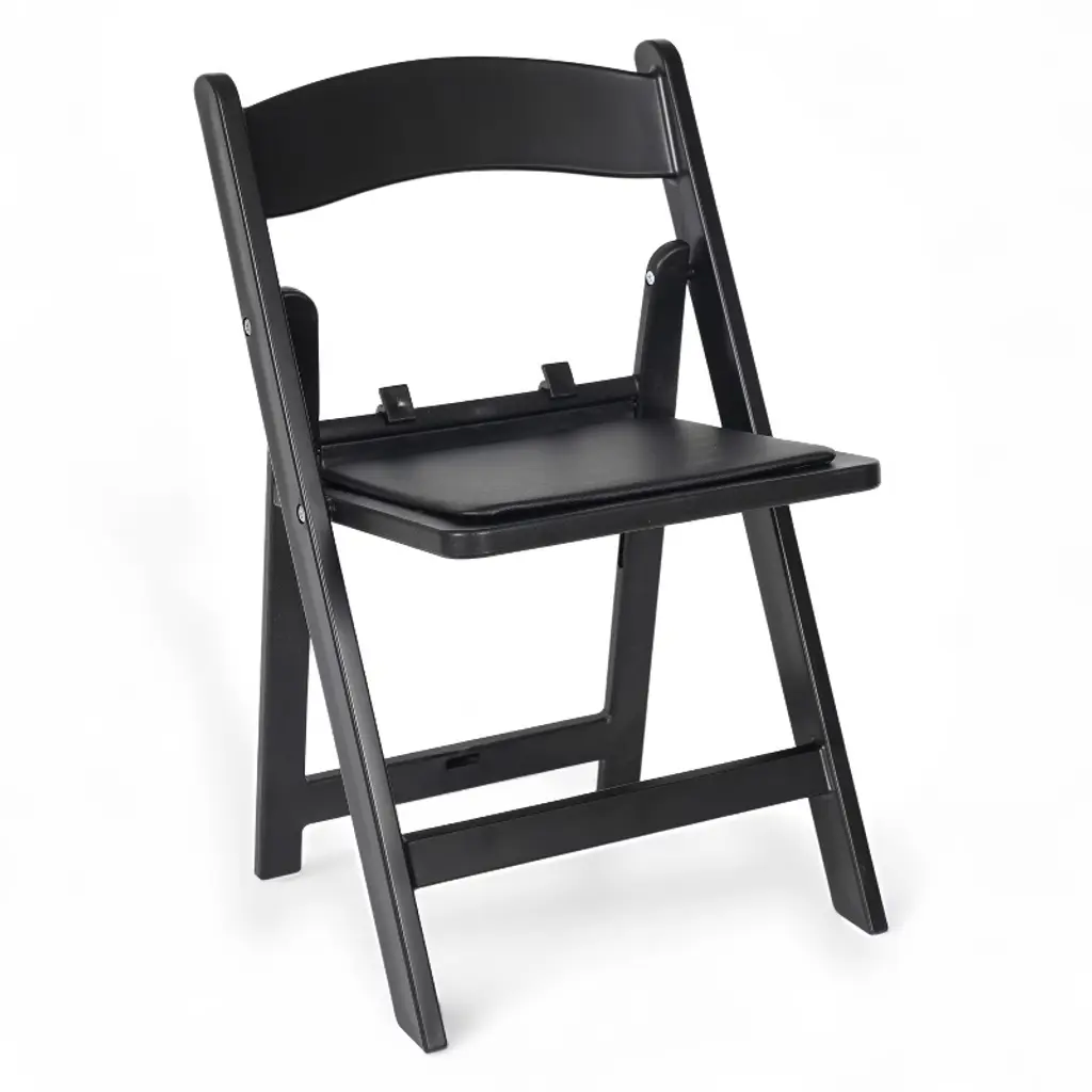 Resin Folding Chairs With Padded Seat And Pvc Leather Cushions Ideal For Indoor-Outdoor Use - 17.5”l X 17.1”w X 30.7”h - Black-Pack-4