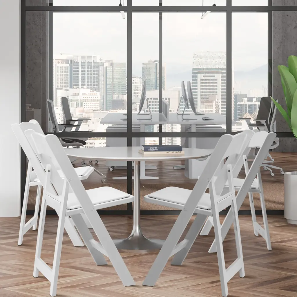 Resin Folding Chairs With Padded Seat And Pvc Leather Cushions Ideal For Indoor-Outdoor Use - 17.5”l X 17.1”w X 30.7”h - White-Pack-4