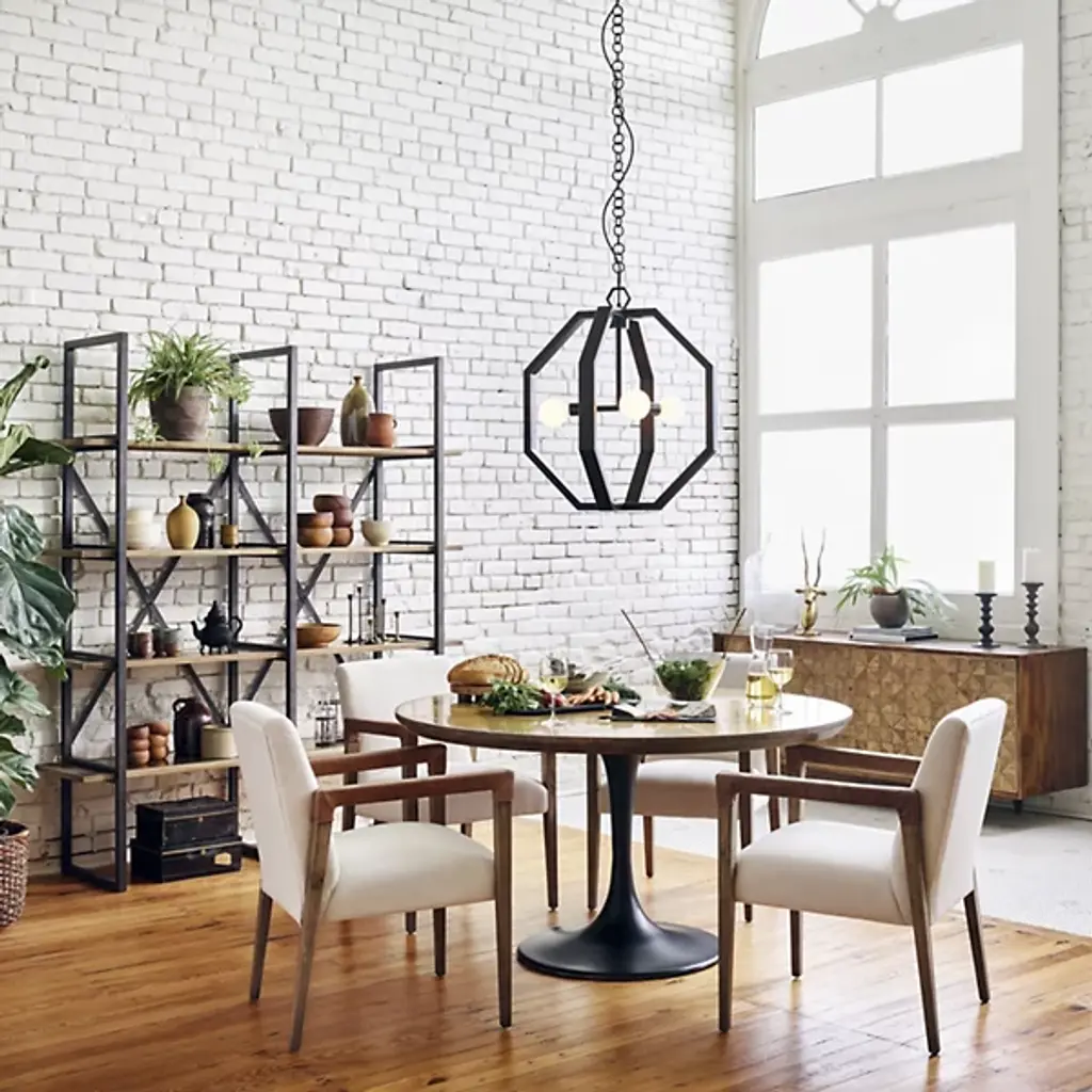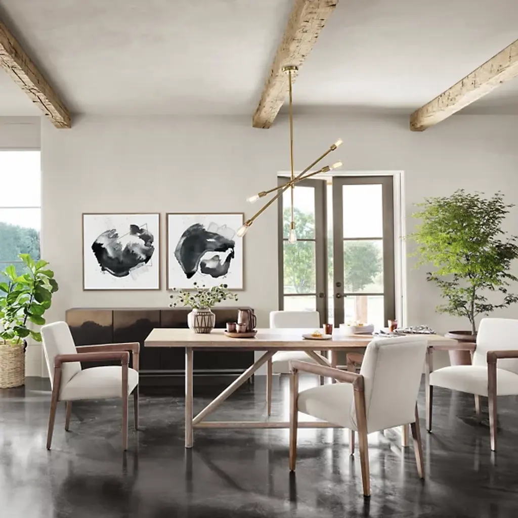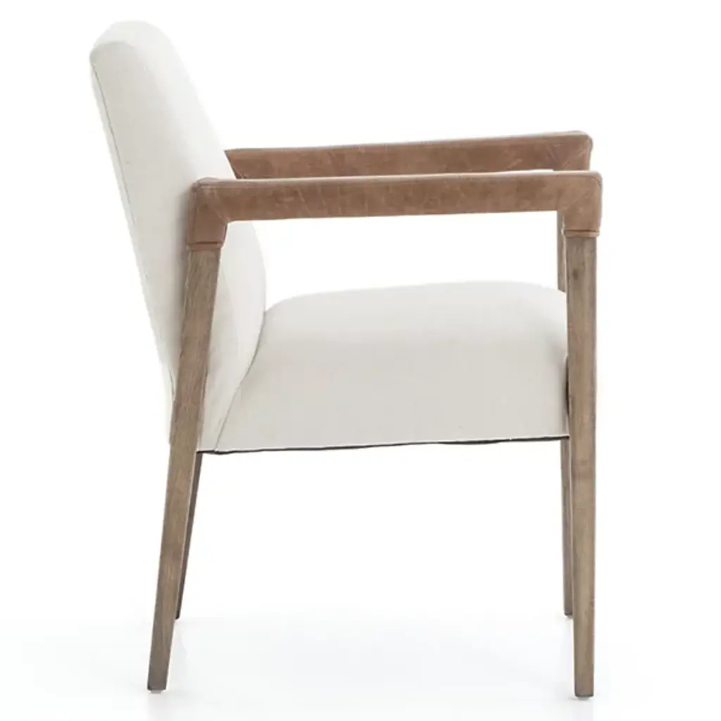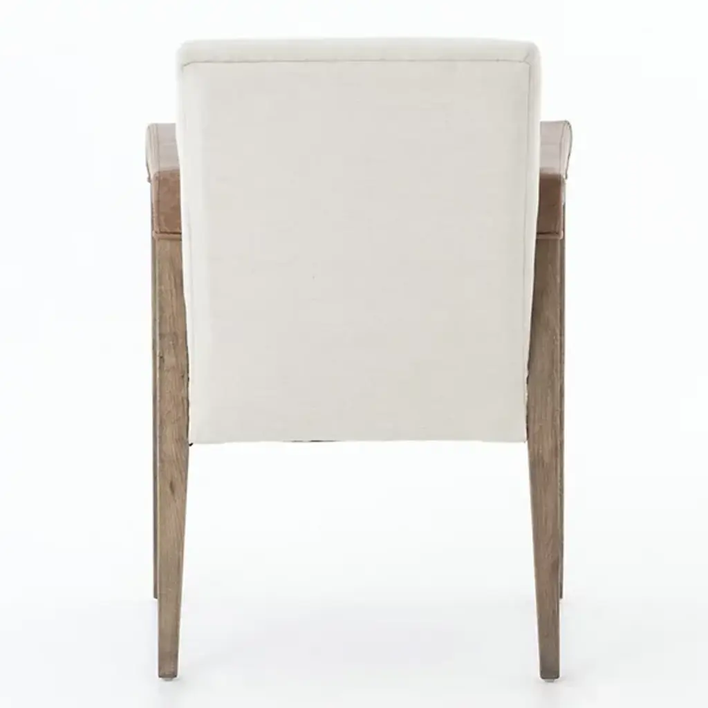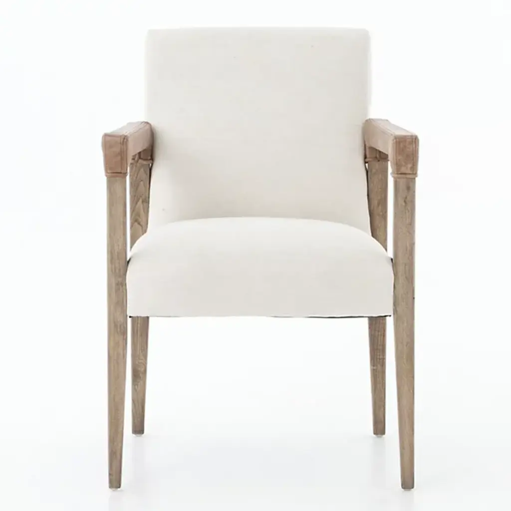 Stylize your dining space with the contemporary Reuben Dining Chair by Four Hands. This chair showcases a framework of solid nettlewood. The Reuben’s arms and legs are seamlessly blended into a linear formation which is reminiscent of a picture frame. Your chair’s seat and seatback are composed of both cotton and linen for your comfort. Featured over the tops of the chair’s arms are top-grain leather embellishments which keep you protected while dining.