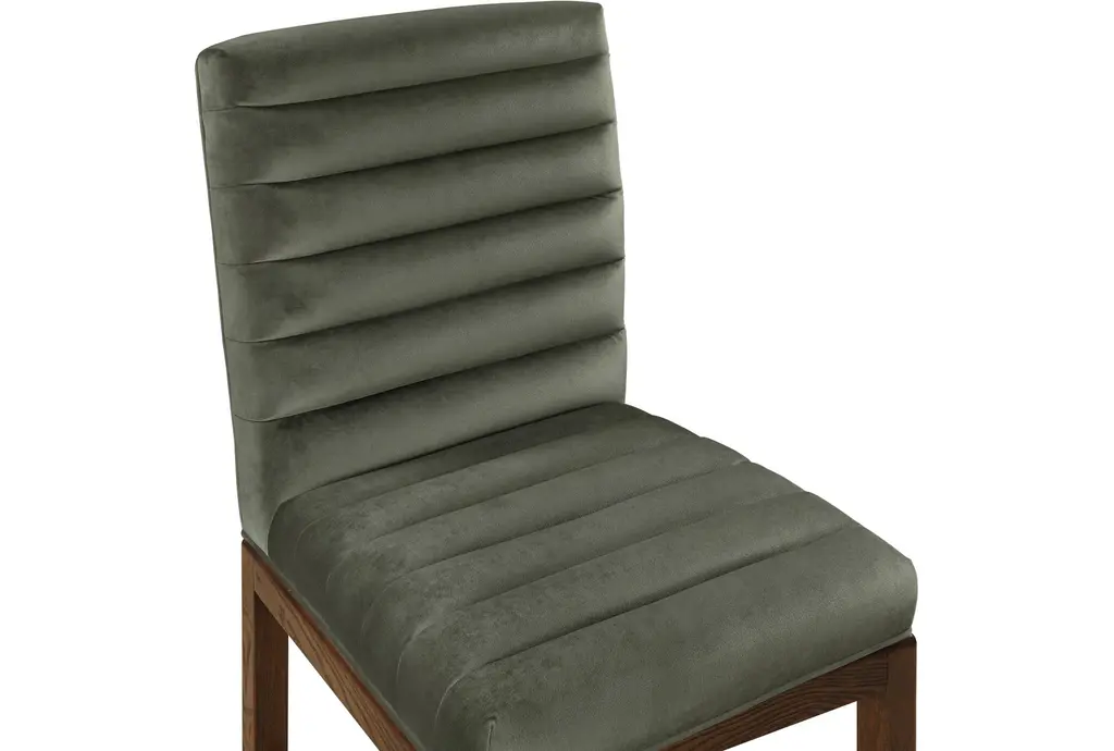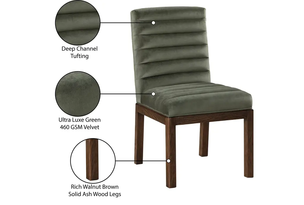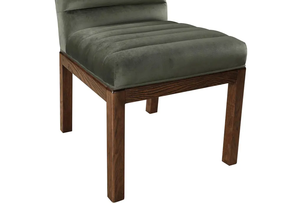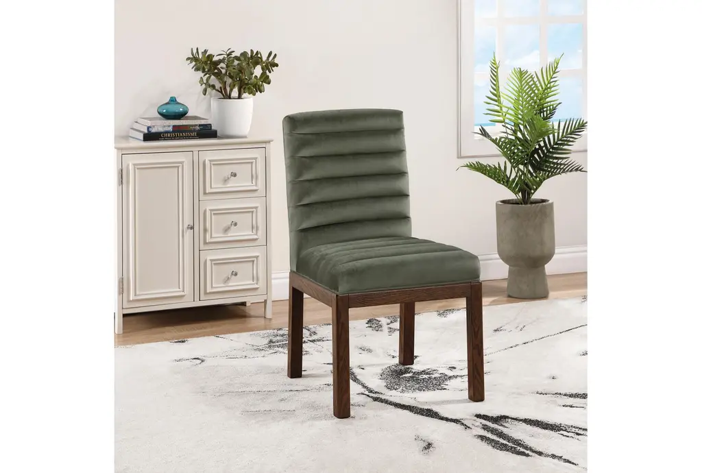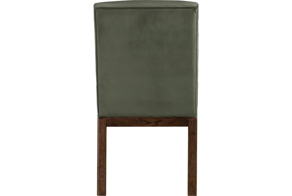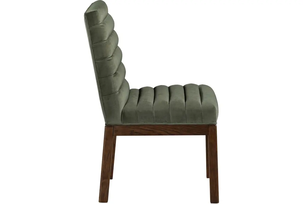 Revelyn Green Velvet Dining Chair With Brown Leg Finish | Armless