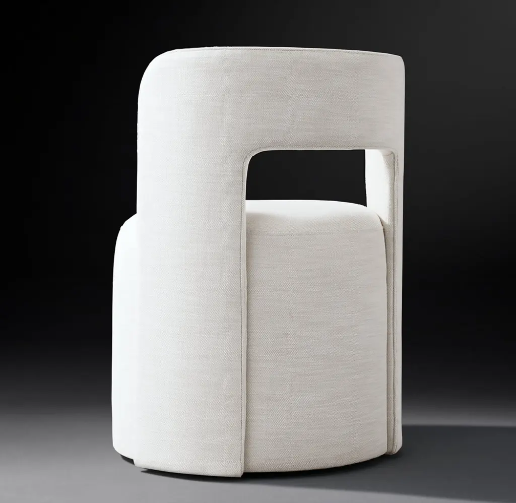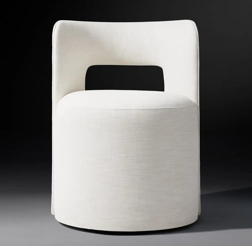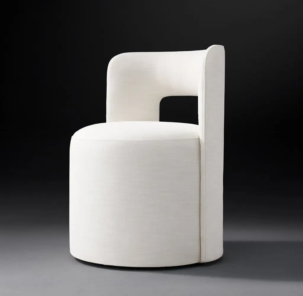 Evoking French Art Deco design, our minimalist interpretation of a 1930s vanity chair has a stunning silhouette. Compact in form, the chair offers considerable comfort with a gently curved, open back and amply padded seat. Tailored and elegant, the design appears to float atop its upholstered base. SHOP THE ENTIRE COLLECTION