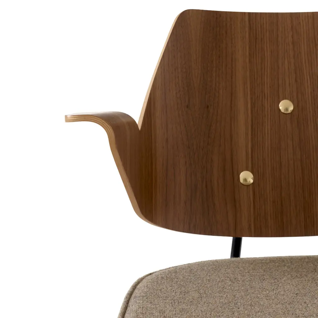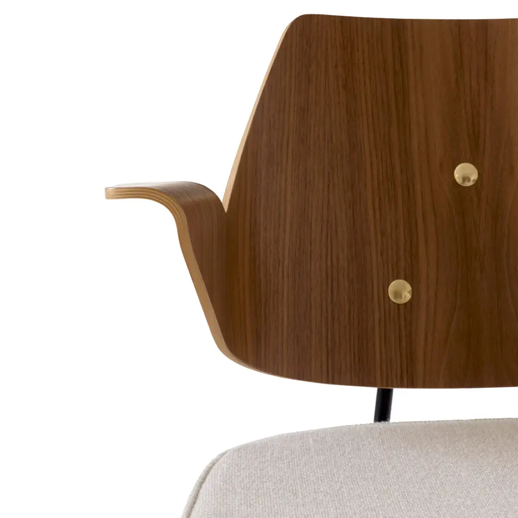 Originally created to seat visitors in the dining rooms of the Royal Festival Hall, the RFH Armchair by Robin Day is characterized by the softly curved backrest and outwardly reaching arms. Rich in materiality, the chair's striking form is achieved through a process of form-press moulding layers of beech and walnut veneer.
