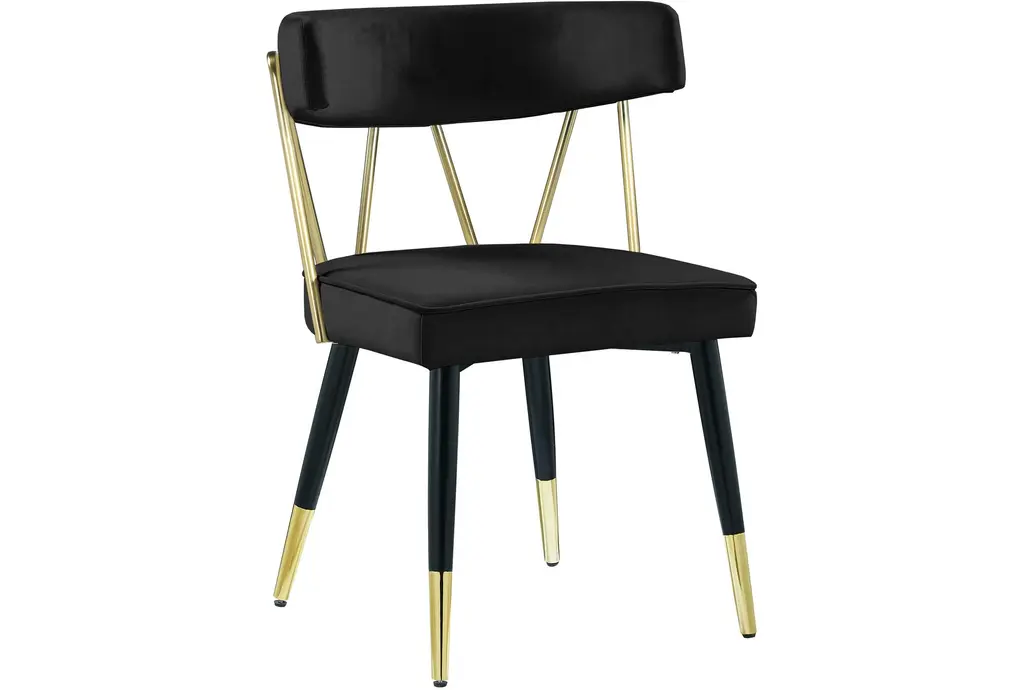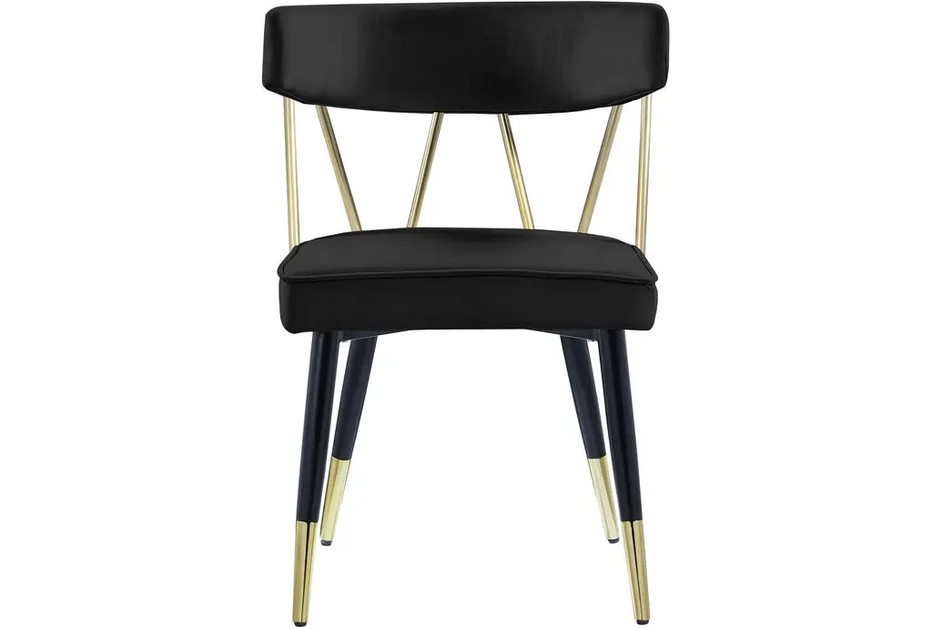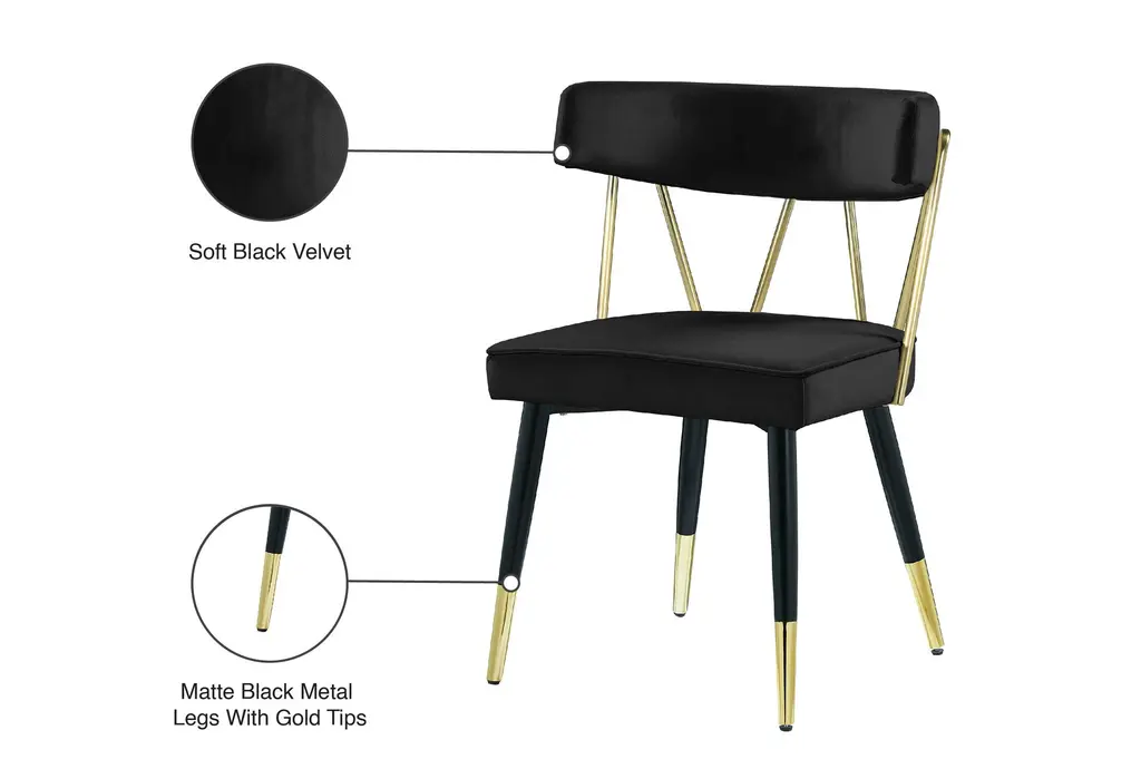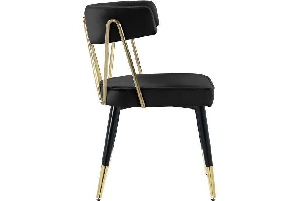 Rheingold Black Velvet Dining Chair With Matte Black / Gold Finish Set Of 2