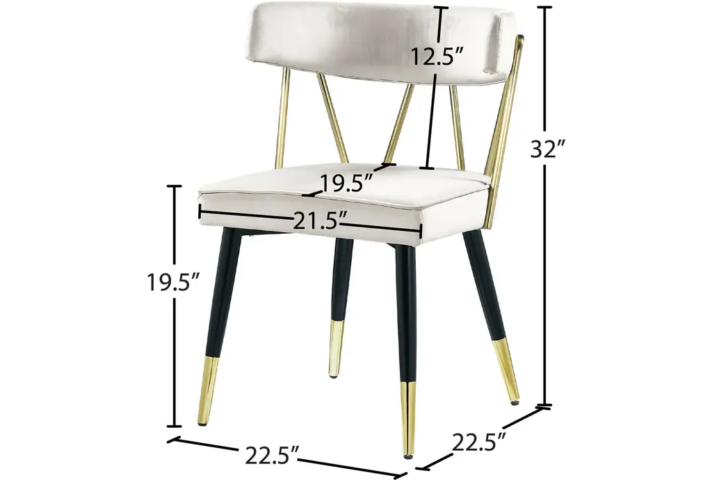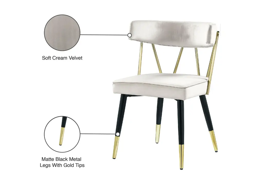 Rheingold Cream Velvet Dining Chair With Matte Black / Gold Finish Set Of 2