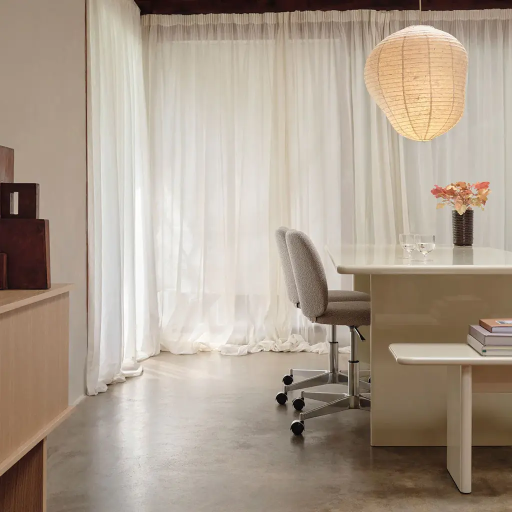 The Rico Collection welcomes curves and volumes into a classic design defined by soft lines and an embracing expression. This versatile chair features castor wheels for easy mobility and an integrated pump for effortless adjustability. Its subtly understated backrest enhances the minimalist aesthetic. providing a refined and cozy feel.