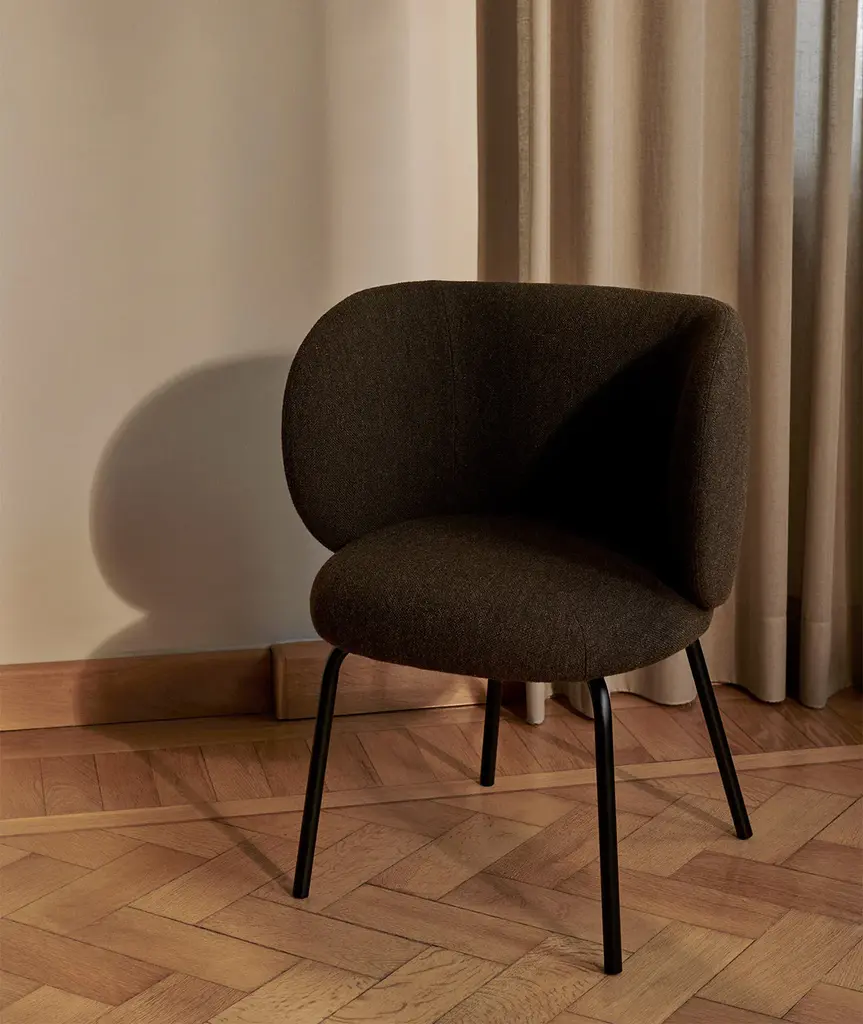 The Rico collection welcomes curves and volumes into a classic design defined by soft lines and an embracing expression. Featuring four elegant tubular steel legs as the base, the Rico Dining Chair presents a refined addition to the Rico family. Place it around the dining table and offer your guests a comfortable, inviting seat during long dinner parties, or use it as a desk chair in your own home or at the office.