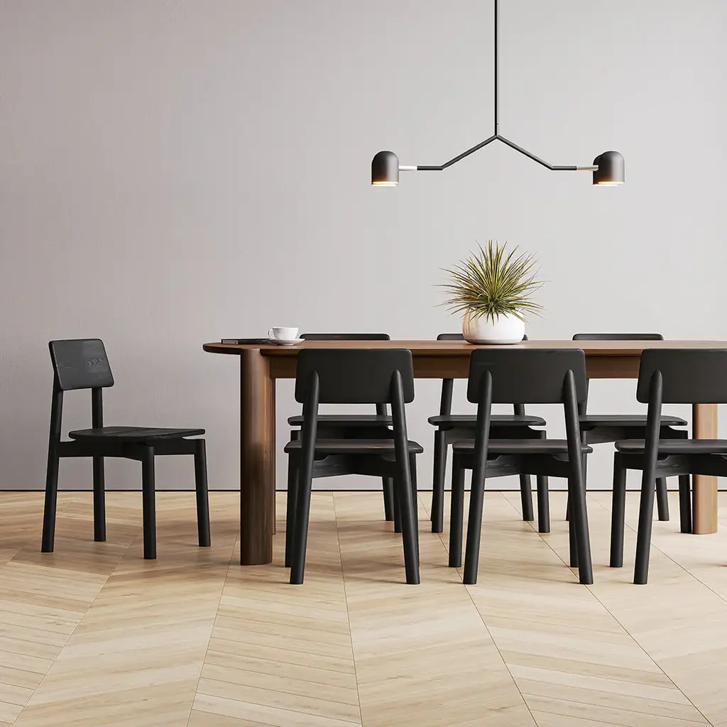 Unassuming yet brilliant in its simplicity, the Ridley Dining Chair is the perfect example of the impact purposeful details can have on design. A slight curve to the chair’s back provides gentle support during leisurely evening meals, while an architectural cross-base gives the illusion of a floating seat. Eased edges soften the chair’s angular appeal and wire brushing brings the intricate graining of the wood alive beneath the stain. Expect guests to admire this sculptural dining chair from every angle.