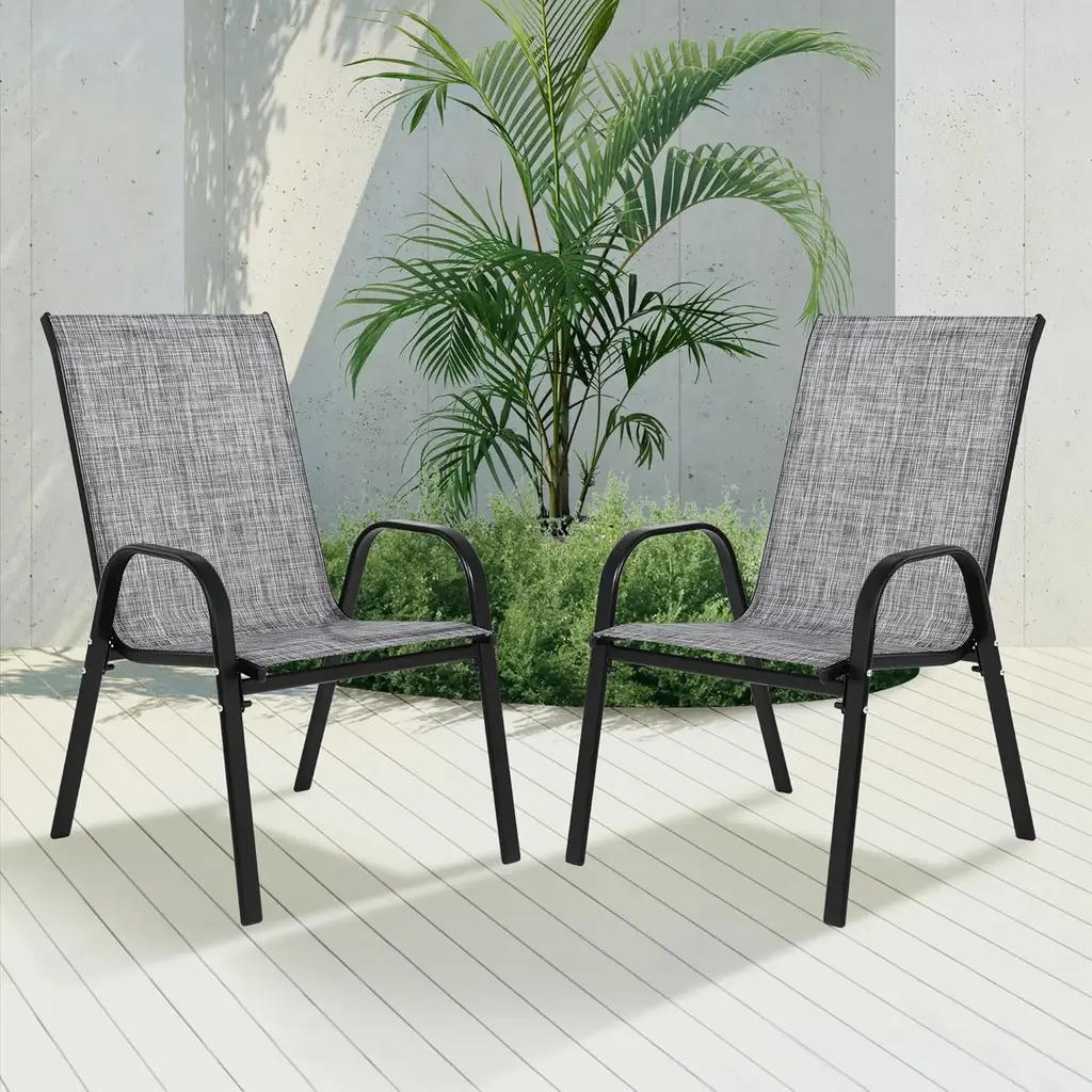 Ridstar 2 Piece Outdoor Patio Dining Chairs With Armrest High Backrest For Garden & Backyard-grey