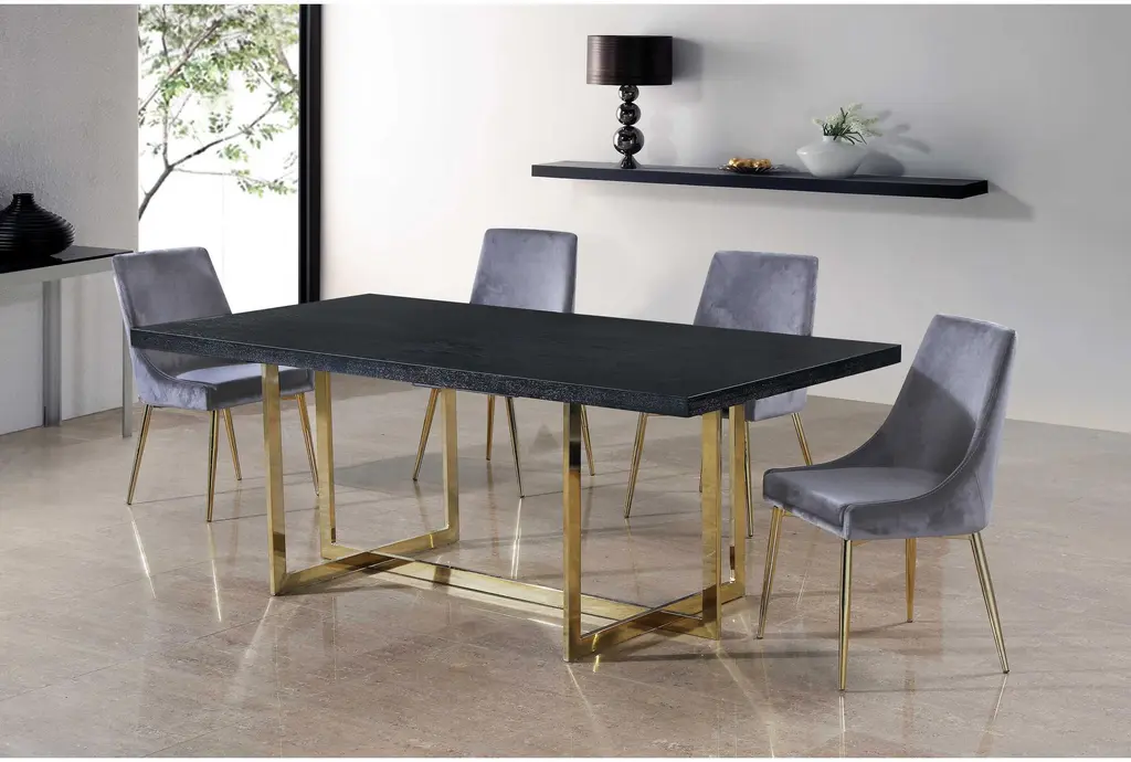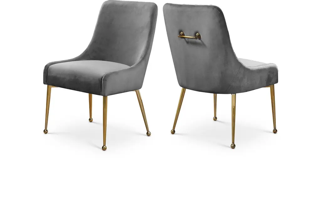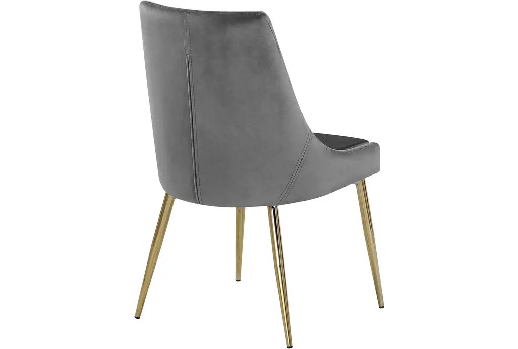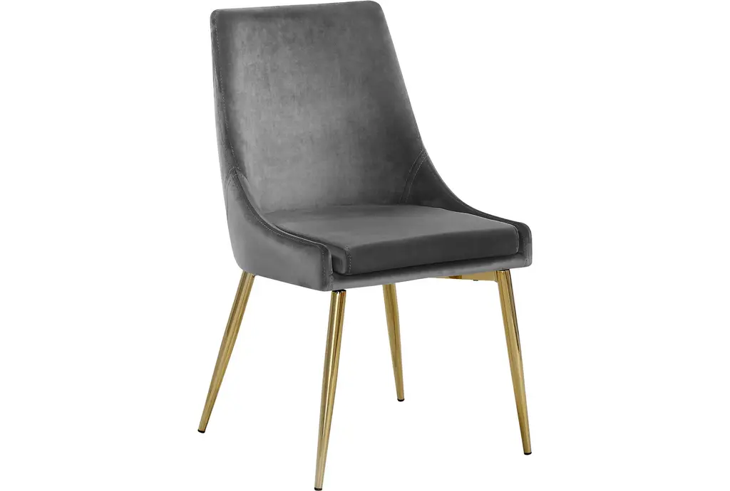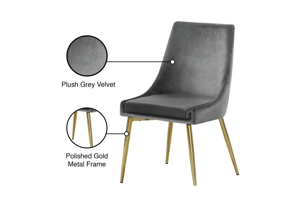 Rina Grey Velvet Dining Chair With Gold Finish Set Of 2