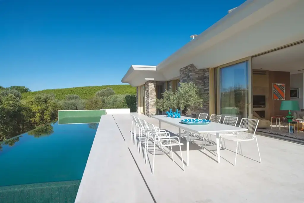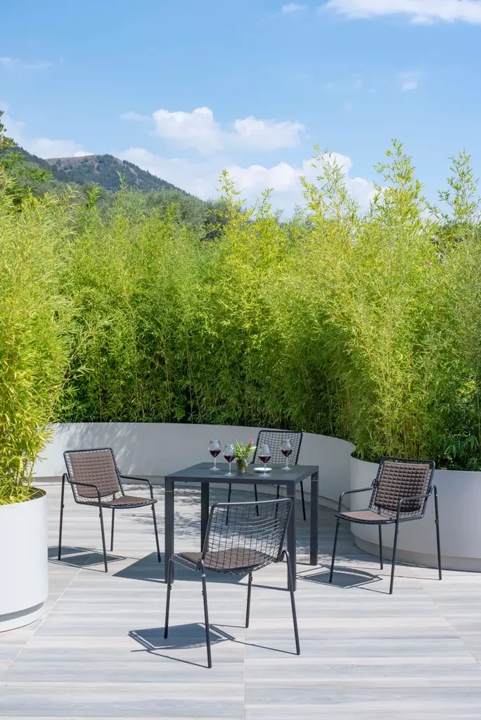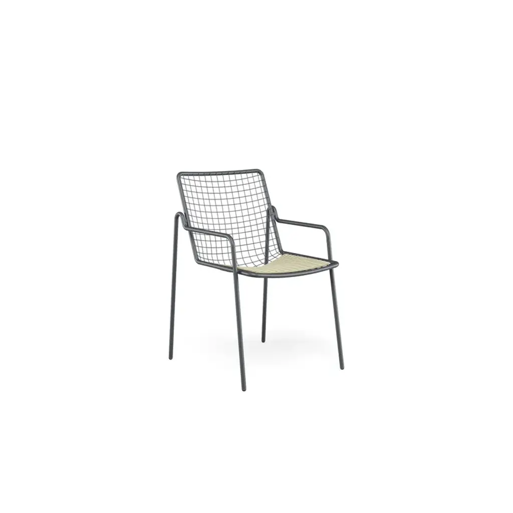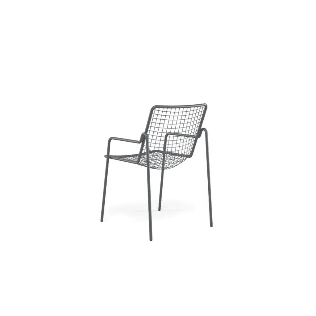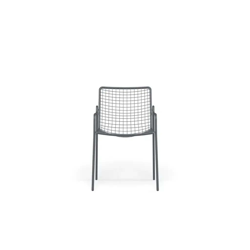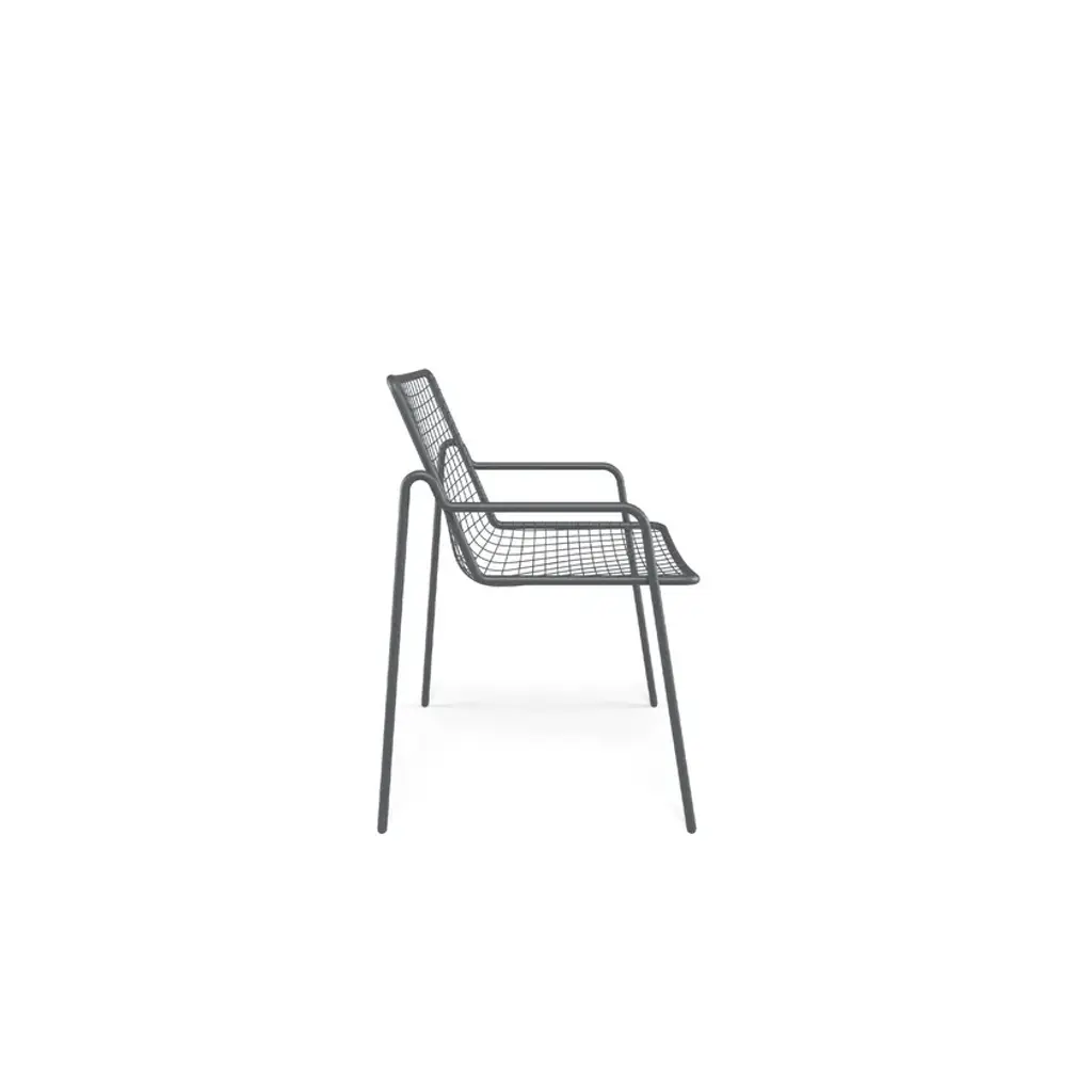 It may appear sober and detached but actually is able to welcome you in a surprising way. RIO R50 is a wise evolution of the Rio masterpiece that this year celebrates a half century. RIO R50 has a frame in ASFORM steel tube, high quality steel with high mechanical performance and high resistance to weight. The manufcaturing process creates a strongly characterized sign, a letter R, which is identified in the junction between seat and backrest. All structural weldings are made with Mig technology which gives great resistance to stress and rust risk; meanwhile the net, composed by steel wires, is electro-welded to the frame for a more precise aesthetics. Like all EMU products, a cataphoresis pretreatment is provided and then a thermosetting powder coating treatment, which finally produces a layer of homogeneous paint in terms of thickness with an high level of adherence and resistance. Nylon feets supports make it easy to move and protect the product. The R50 series is made by wires net and steel tubular and even if inspired by its ancestor it is distinguished thanks to an original and ergonomically interesting folding line. Its solid but light shape supports the back and seat and makes this seat an example of perfect balance between comfort and aesthetics, suitable for indoor and outdoor spaces. Restyling and modernisation in full compliance with a classic furniture piece. RIO R50 is Made in Italy and is a complete seats collection composed by dining chair and armchair, lounge armchair, swing armchair, stool and coffee table. It can dress various destinations such as dining areas and lounge areas with distinctive style. Outdoor and indoor restaurant areas, restaurant areas of hotels, outdoor relaxing areas such as patios, colonnades and winter gardens, reception areas for hotel , small relaxing areas in terraces and balconies of hotel structures.It can also be used in waiting rooms of contract and private spaces such as airports, museums, other community contexts, as well as co-working environments and classic office environments. It can furnish also retail contexts, private spaces such as home offices, study rooms, living and outdoor living areas.