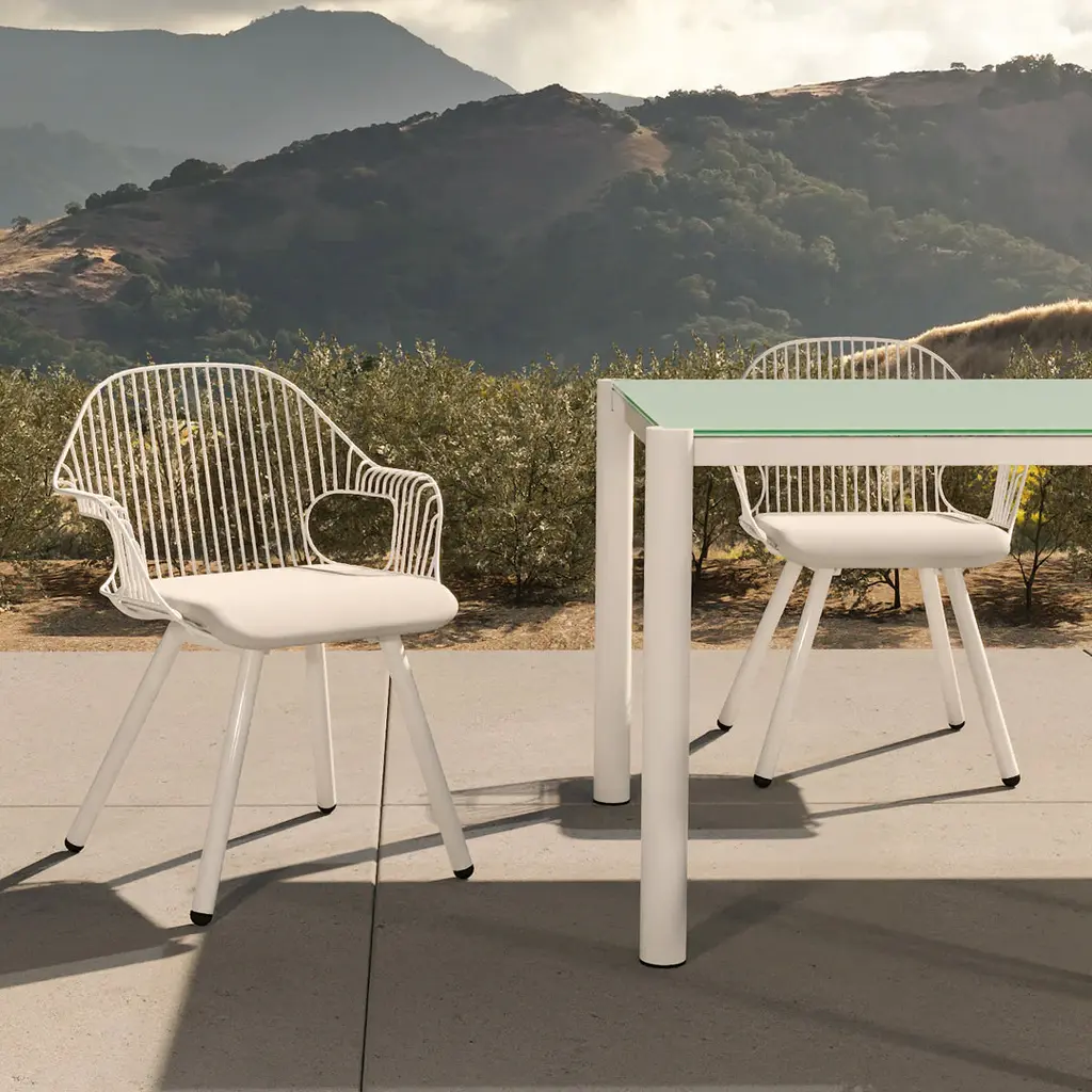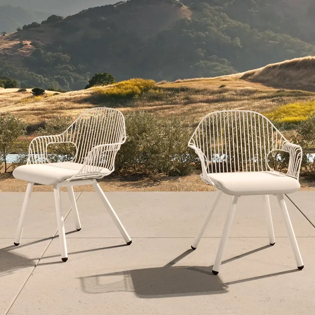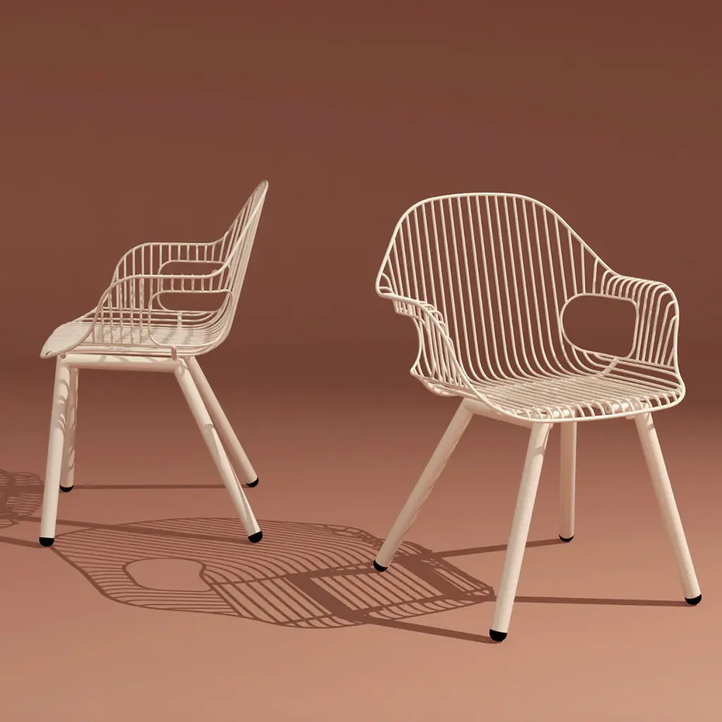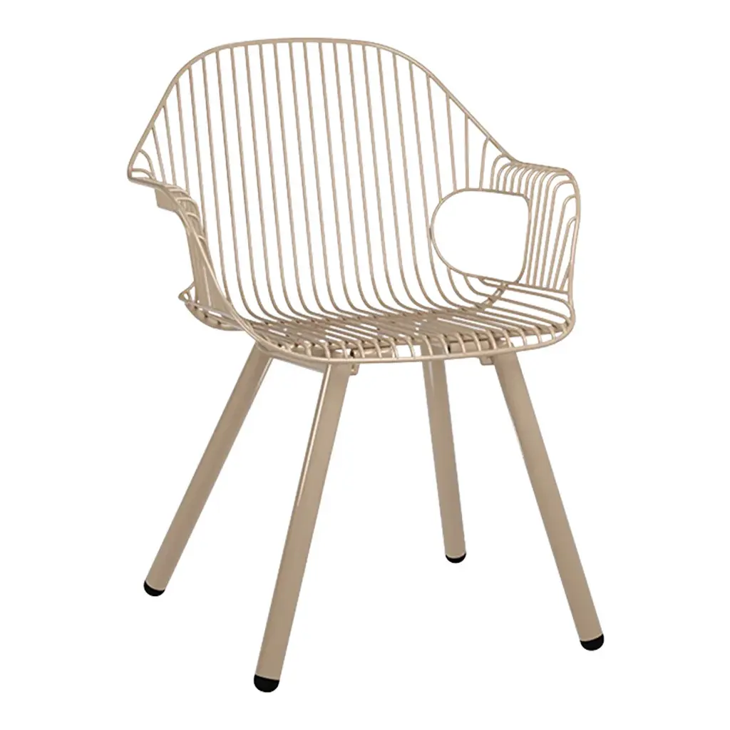 The Rita Chair welcomes you with its graceful, curved armrests, providing a comfortable spot to rest your arms while evoking the beauty and harmony found in nature. The chair's sophisticated silhouette makes it an ideal choice for gatherings around dining tables, and its ergonomic design guarantees a comfortable seating experience. Crafted with sturdy materials and an open design, this chair is an excellent addition to commercial and hospitality spaces.