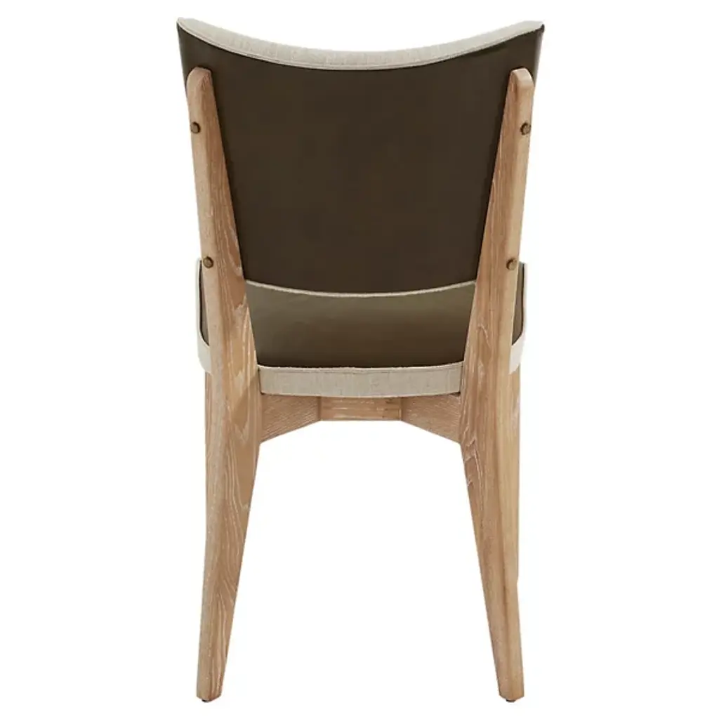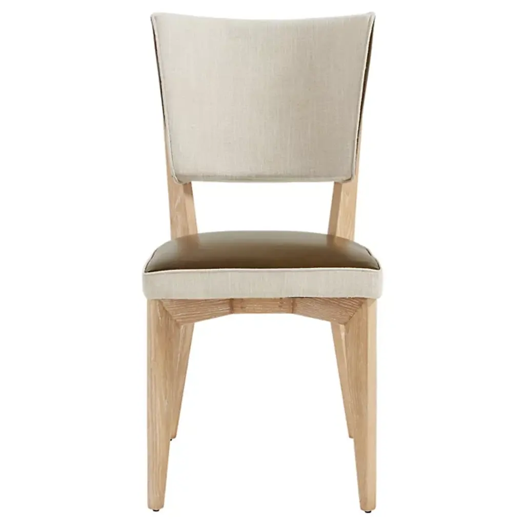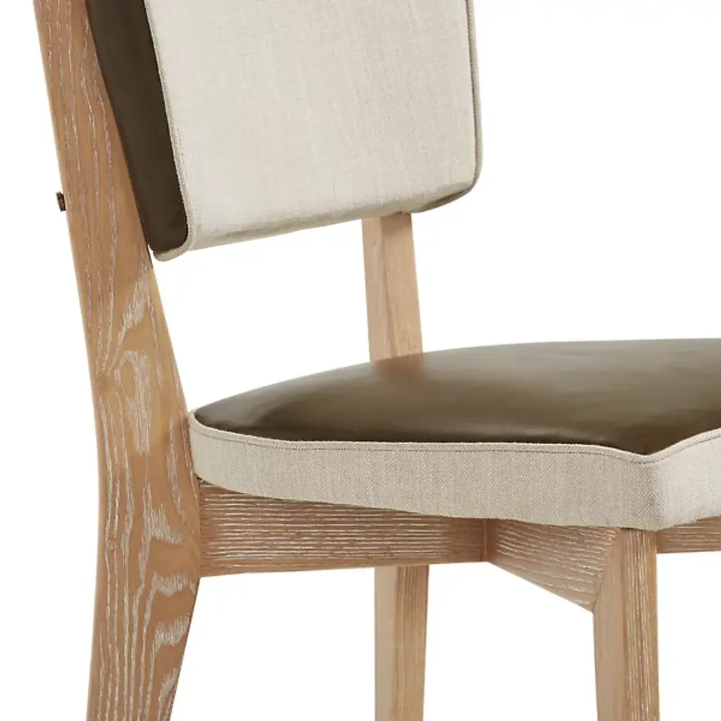 The Rive Gauche Dining Chair from Jonathan Adler features Parisian elegance and a beautifully crafted wire-brushed and limed wood frame. This chair is upholstered in a sophisticated mix of oatmeal linen and olive leather, which offers style and comfort. Timelessly chic and endlessly versatile, this chair blends into any dining setting. Its family-friendly design ensures durability without sacrificing elegance, making it your new go-to for refined yet functional dining spaces.