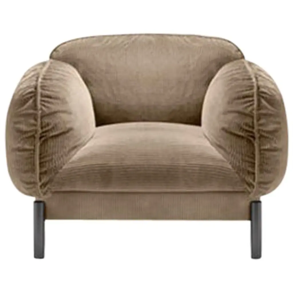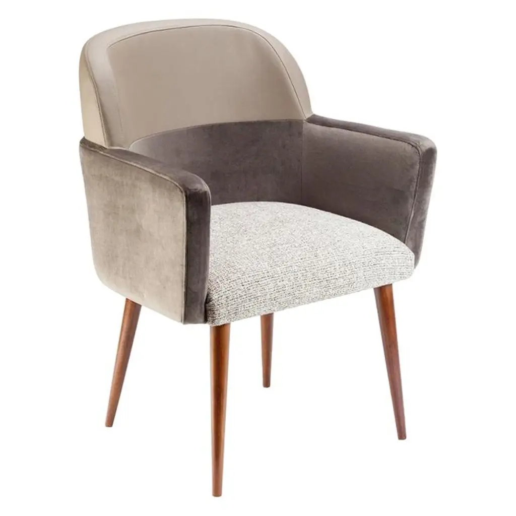 Playfully blocky, the Rocco Dining Chair has an appealing frame that sets a clubby mood. Designed in Brooklyn by Syrette Lew of Moving Mountains and handcrafted in Italy, this chair’s rounded silhouette and distinct sculptural lines are made for lounging over lunch, dinner or drinks. Upholstered in Schumacher's Belvoir fabric. When a casual scheme calls for a dose of glam, turn to this irregular chevron pattern.