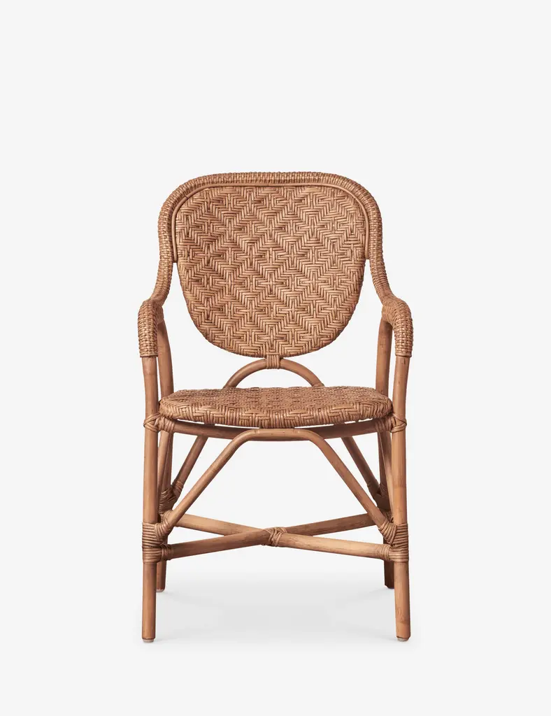 The Romantica Chair is a classic indoor dining or desk chair with exquisite fine woven details throughout the backrest and arms. The chair is a coveted choice for private homes and restaurants, as its unique design balances refinement and flair. Each piece is handcrafted and built to last, with the natural rattan beautifully on display.