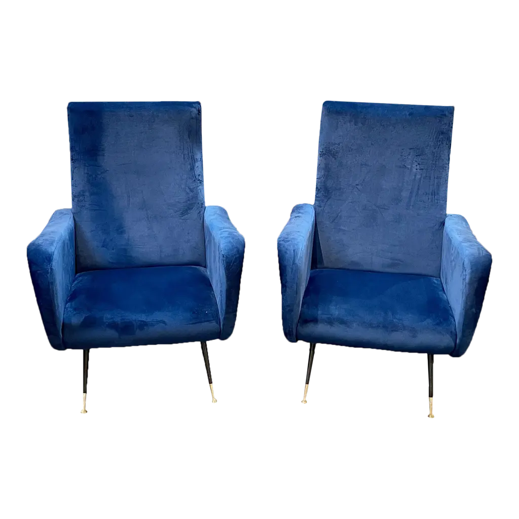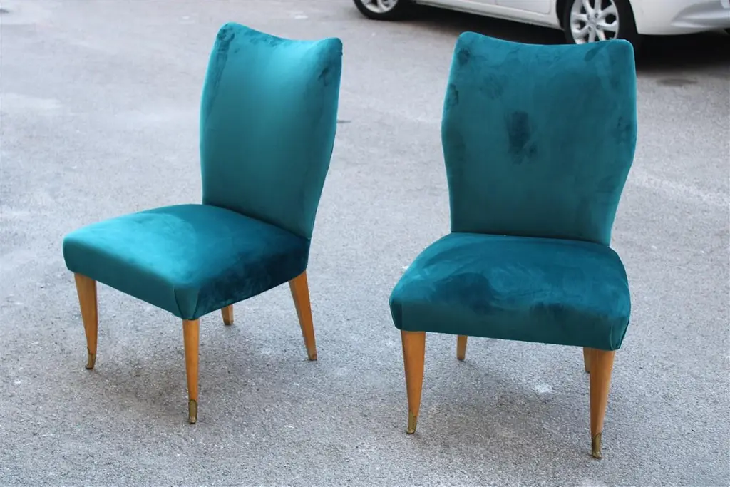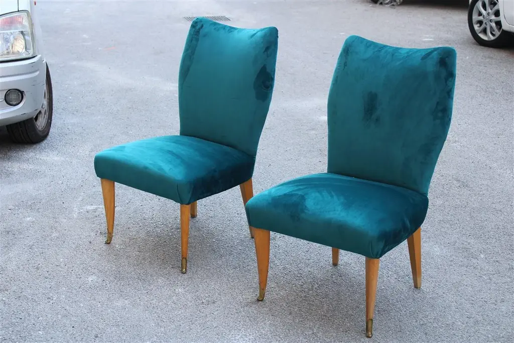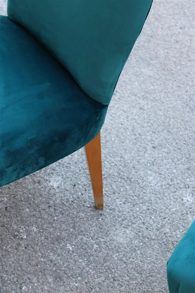 Room Set Pair Of Chairs Green Velvet Ashwood Italian Design Midcentury, 1950s