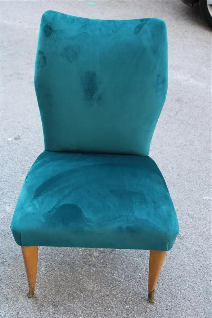 Room set pair of chairs green velvet ashwood Italian design midcentury, 1950s.